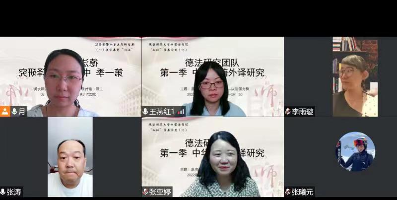 为了增强公司师生对中华典籍外译的研究的兴趣,加深科研意识,扩大学术视野,太阳成集团tyc234cc德法研究团队于6月16日下午14:30在腾讯会议平台举办了“中华典籍外译研究”系列第一次沙龙活动,就“唐传奇在欧洲的译介——以法国为例”展开讨论。本次沙龙由公司法语系资深讲师赵玥老师主讲,由法语系系主任王燕红老师主持,太阳成集团tyc234cc部分教师参加并参与交流讨论。