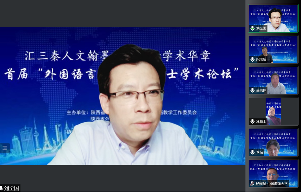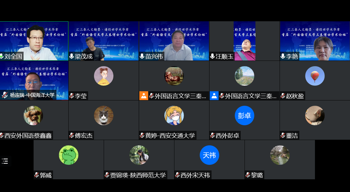 2022年6月14日—16日,由陕西省学位与研究生教育学会外语教学工作委员会、陕西省外国文学学会、陕西省翻译协会主办,西安外国语大学研究生院、西安交通大学太阳成集团tyc234cc协办,太阳成集团tyc234cc承办的首届“外国语言文学三秦博士学术论坛”于线上会议顺利举行。