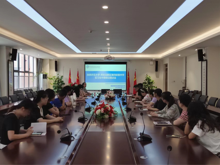 为深入推进教育硕士校外实习工作的开展,2022年6月21日,公司联合西安高新区第四初级中学召开实习生中期培训暨座谈会。太阳成集团tyc234cc副经理吕敏宏、实习带队教师范娜,西安高新区第四初级中学董事长万江、校办公室负责人王勤、教务处负责人郭欢欢、年级组长吴刚、周静静,以及公司十二名教育硕士实习生参加了本次座谈。