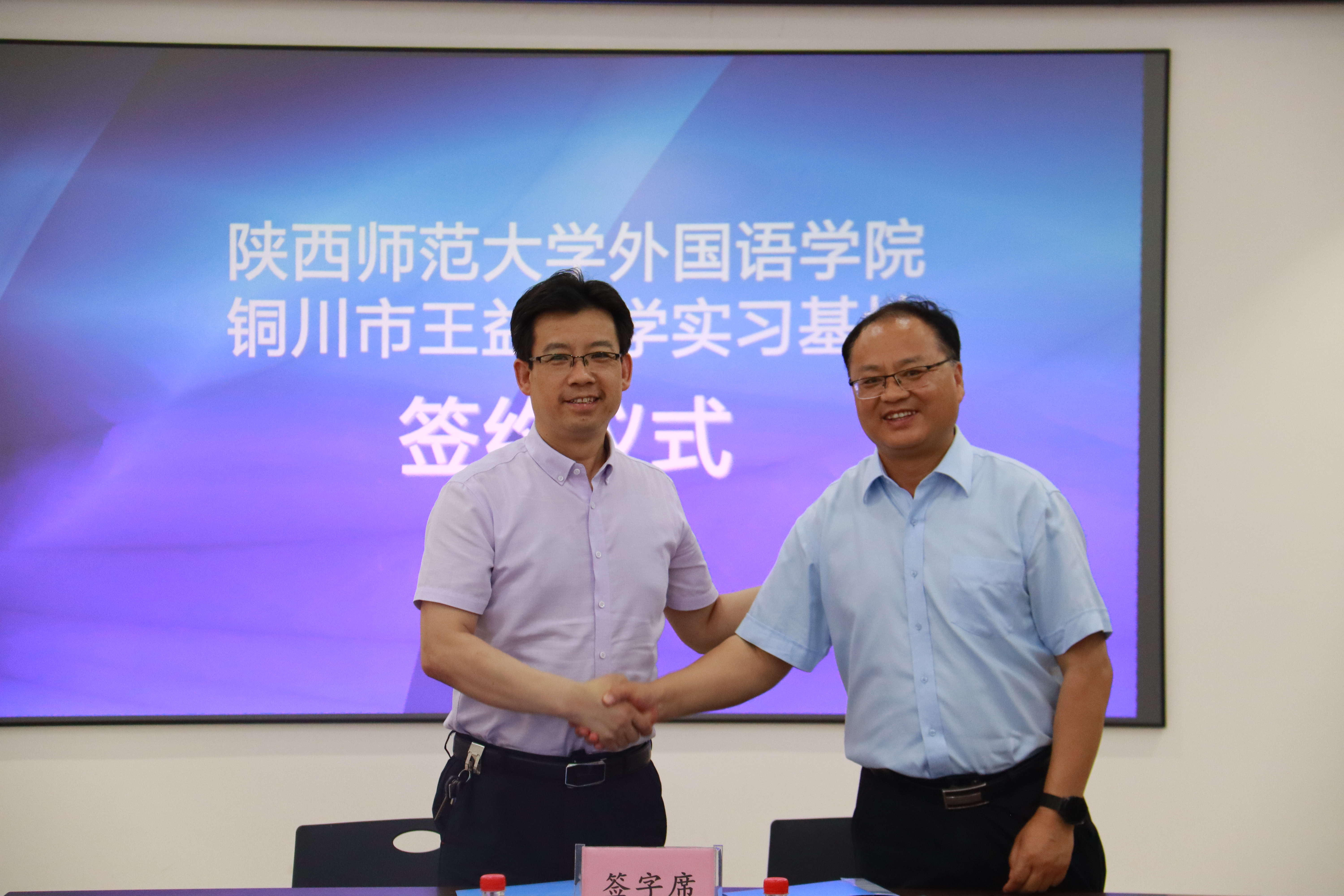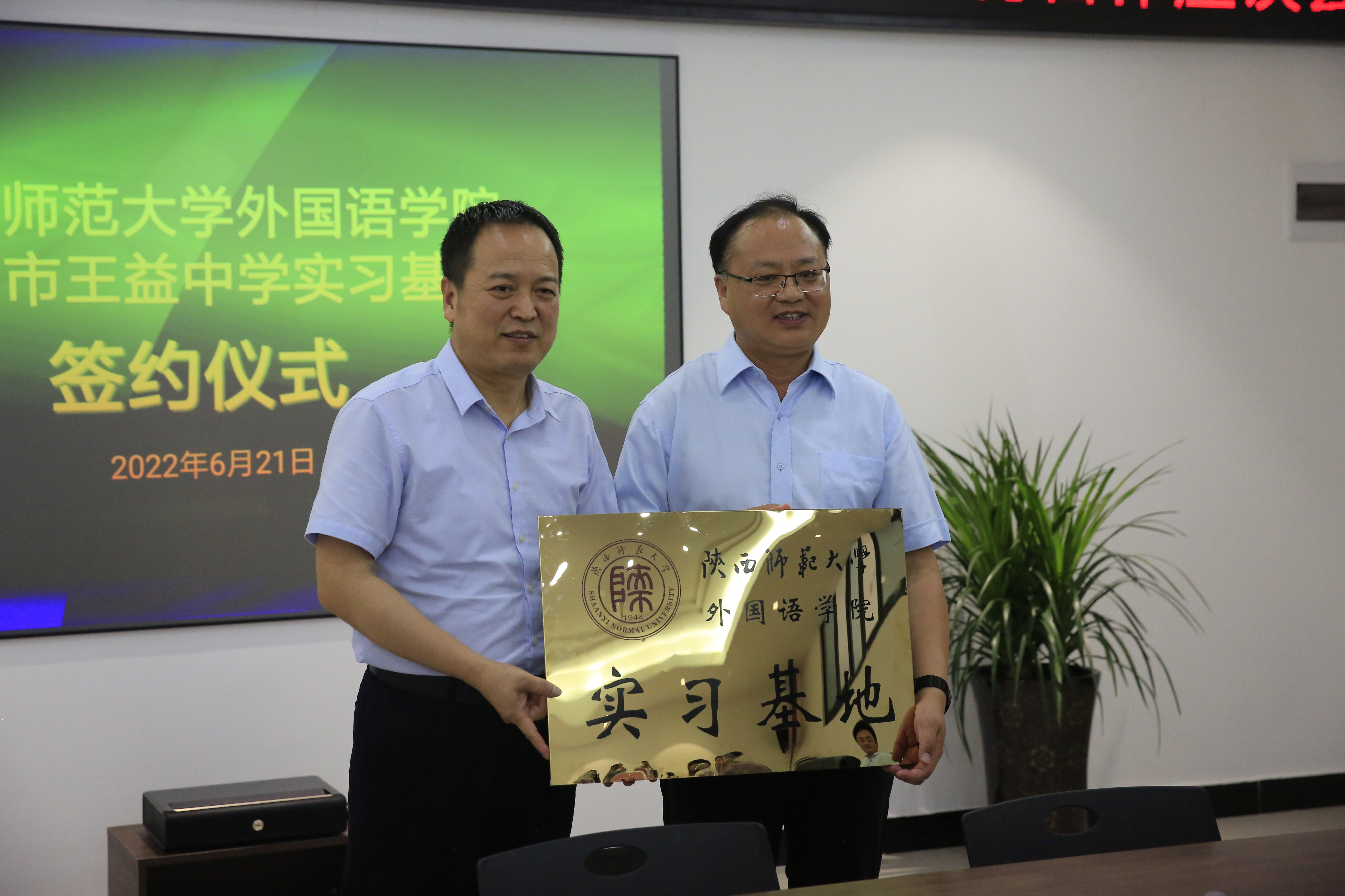 随后,外国语学外国语学经理刘全国与王益中学党委书记、董事长张新奇签署《太阳成集团tyc234cc优质生源基地及实习实践基地协议书》,党委书记董增云给王益中学授牌太阳成集团tyc234cc优质生源基地及实习实践基地。