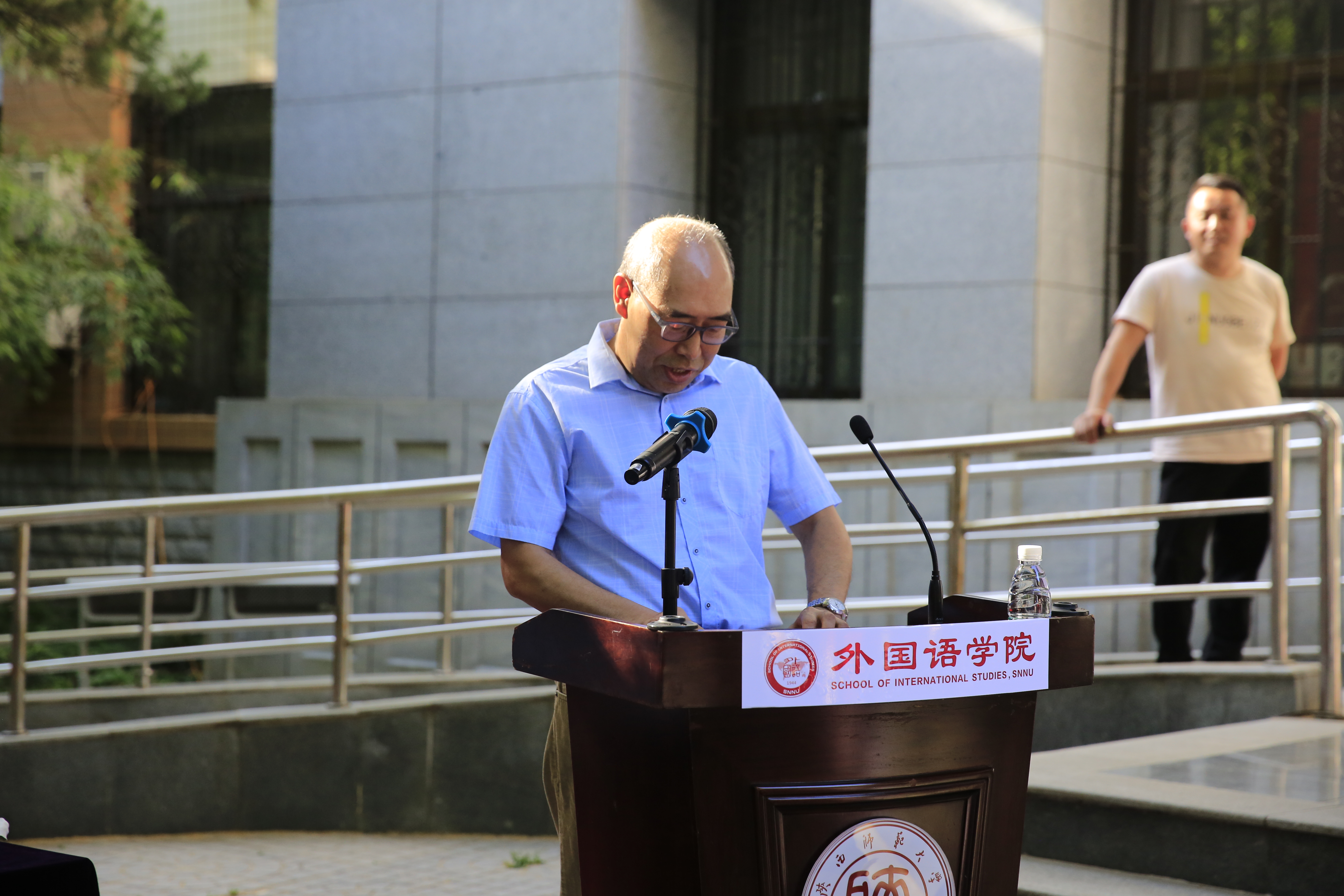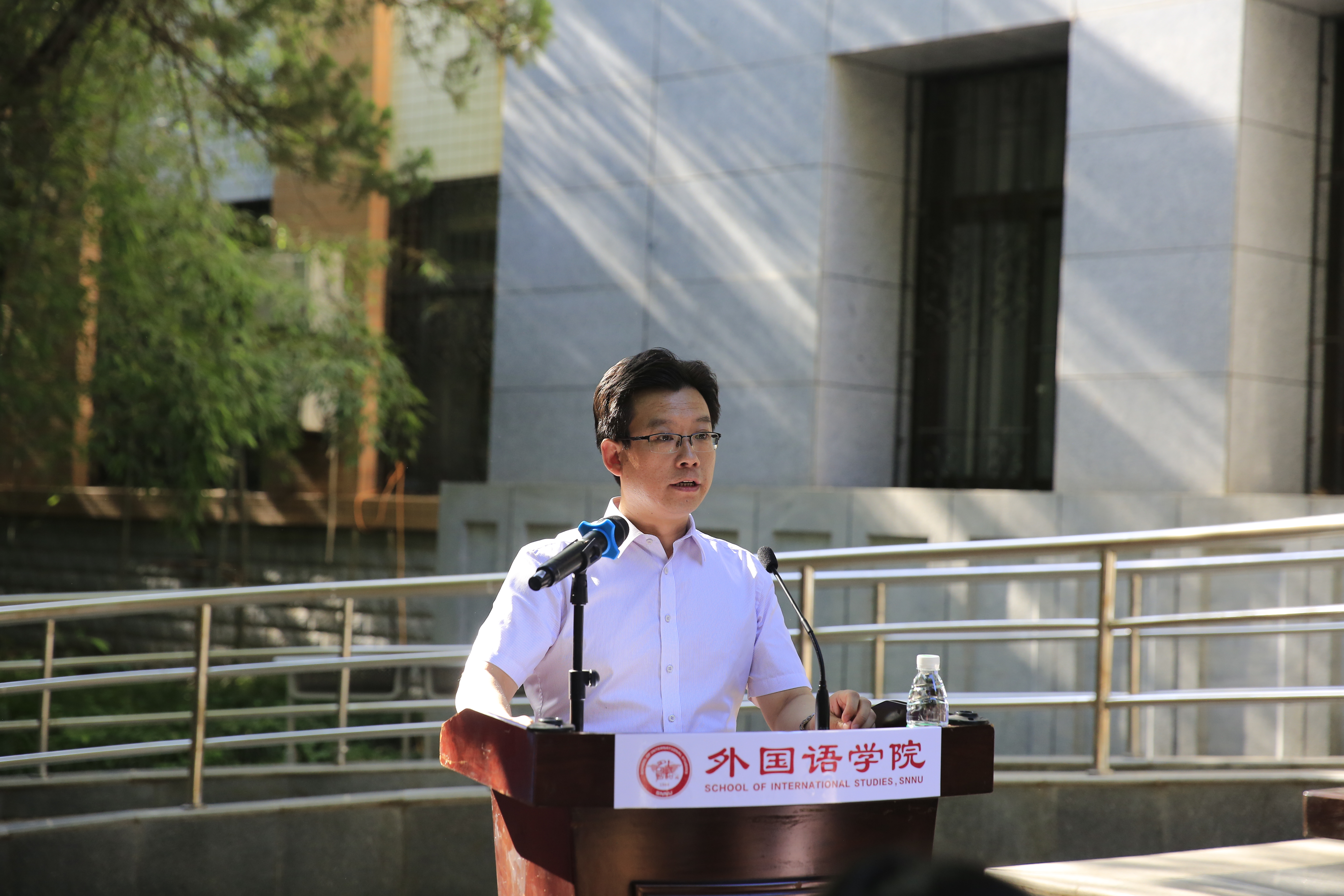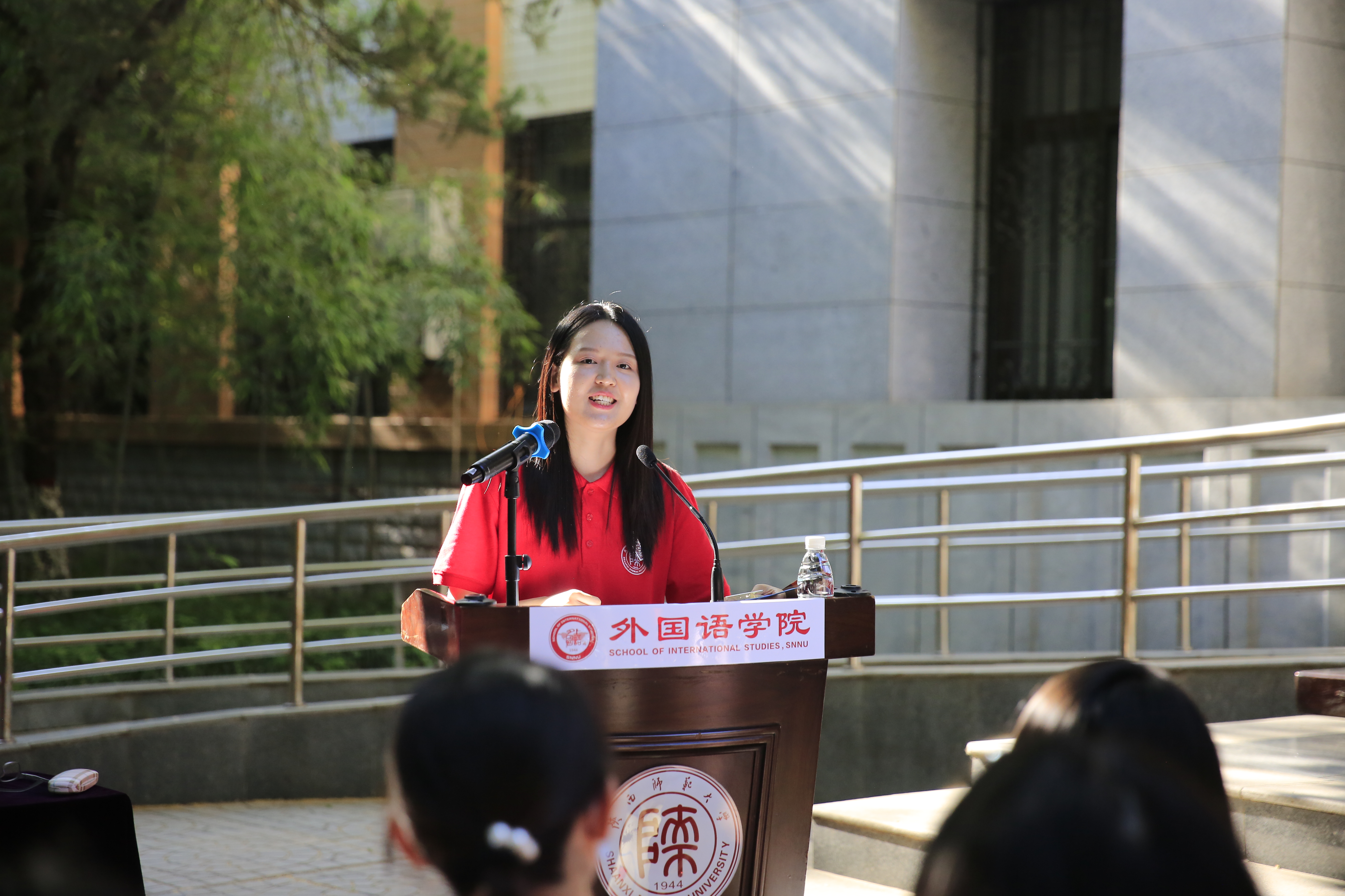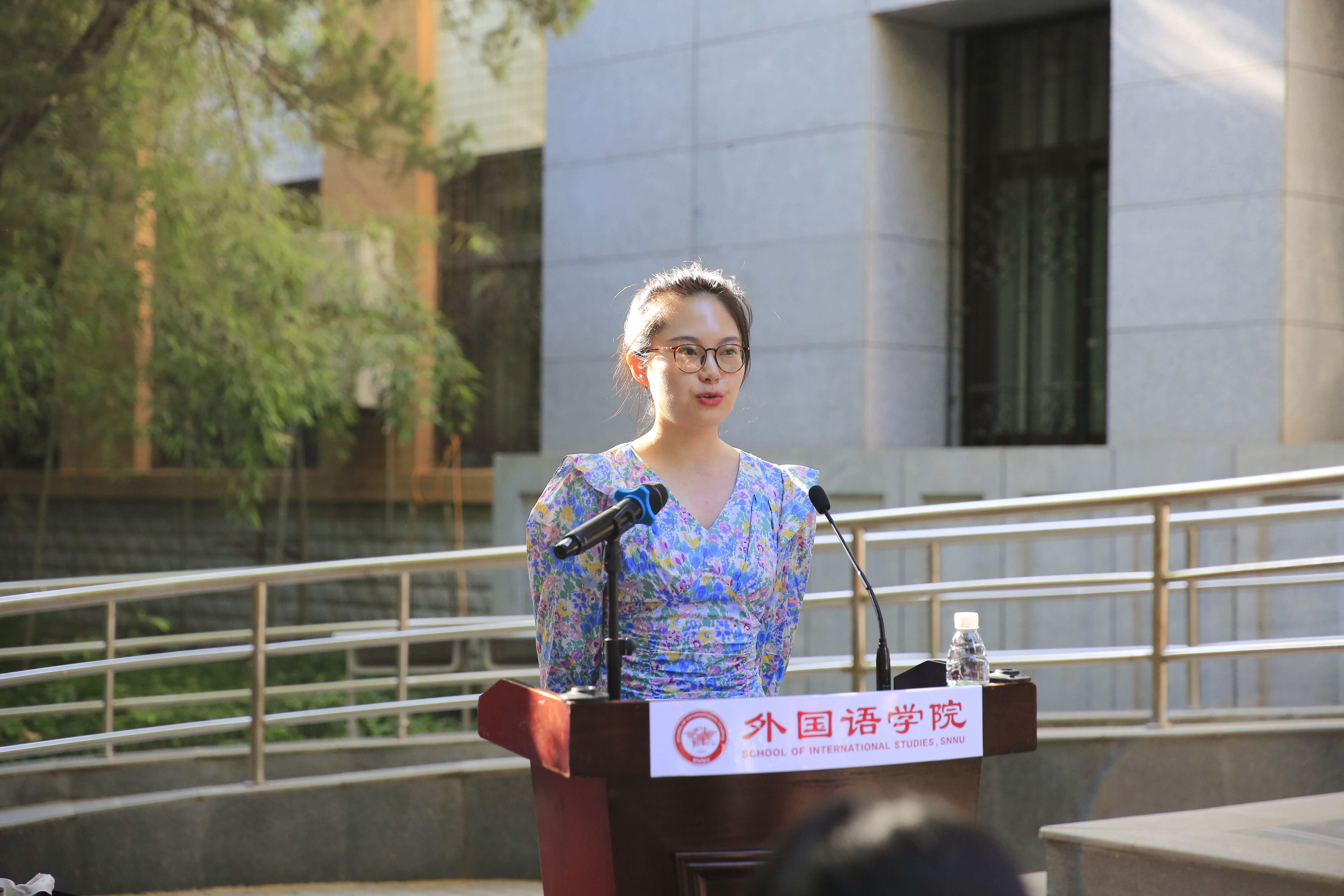 本科生代表、2018级日语专业的陈子淇同学即将赴外交公司深造。她表达了自己对于老员工活的不舍和对同学的深切的祝愿,以及努力作一名优秀的外语人,走向更广阔的世界的信念。
