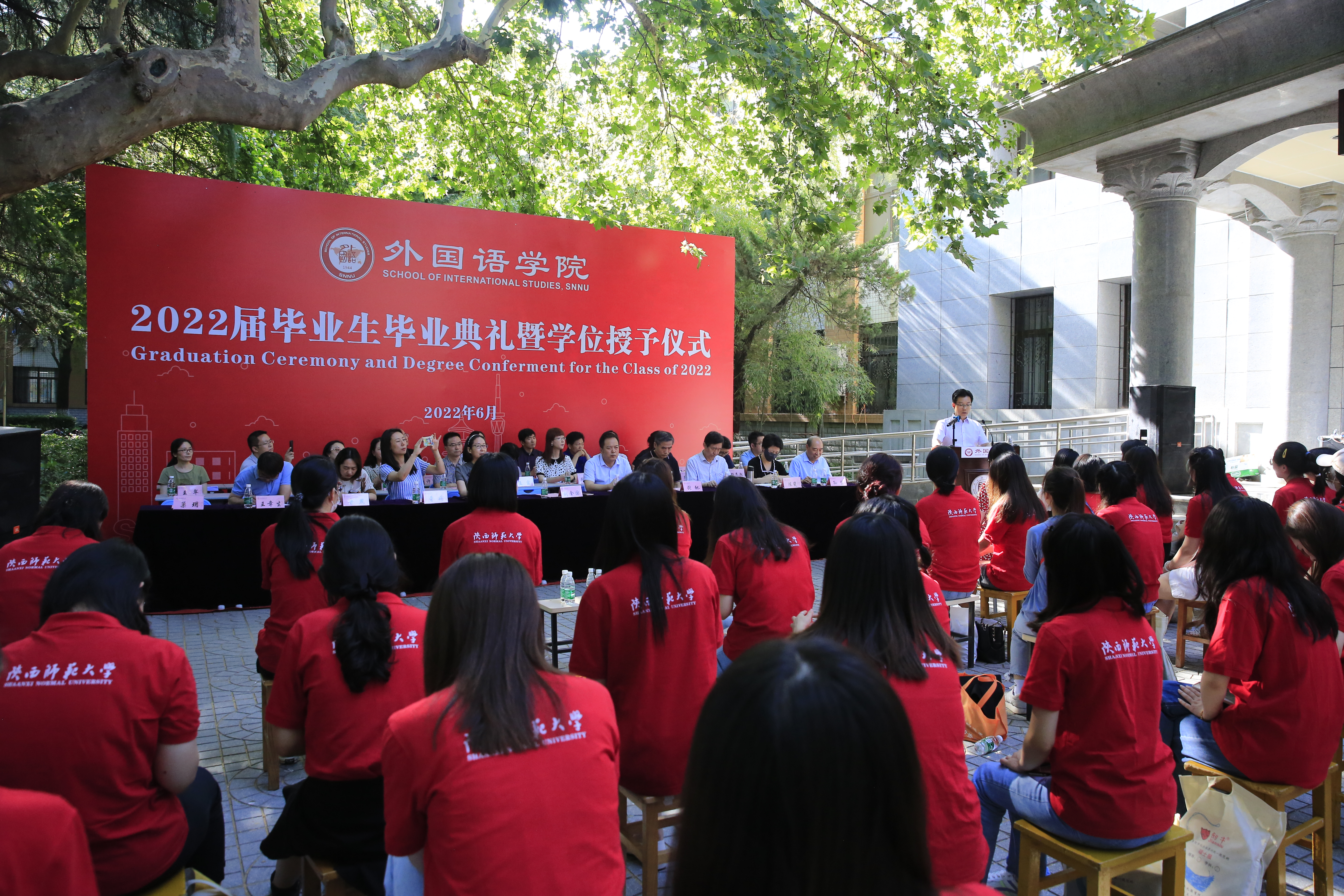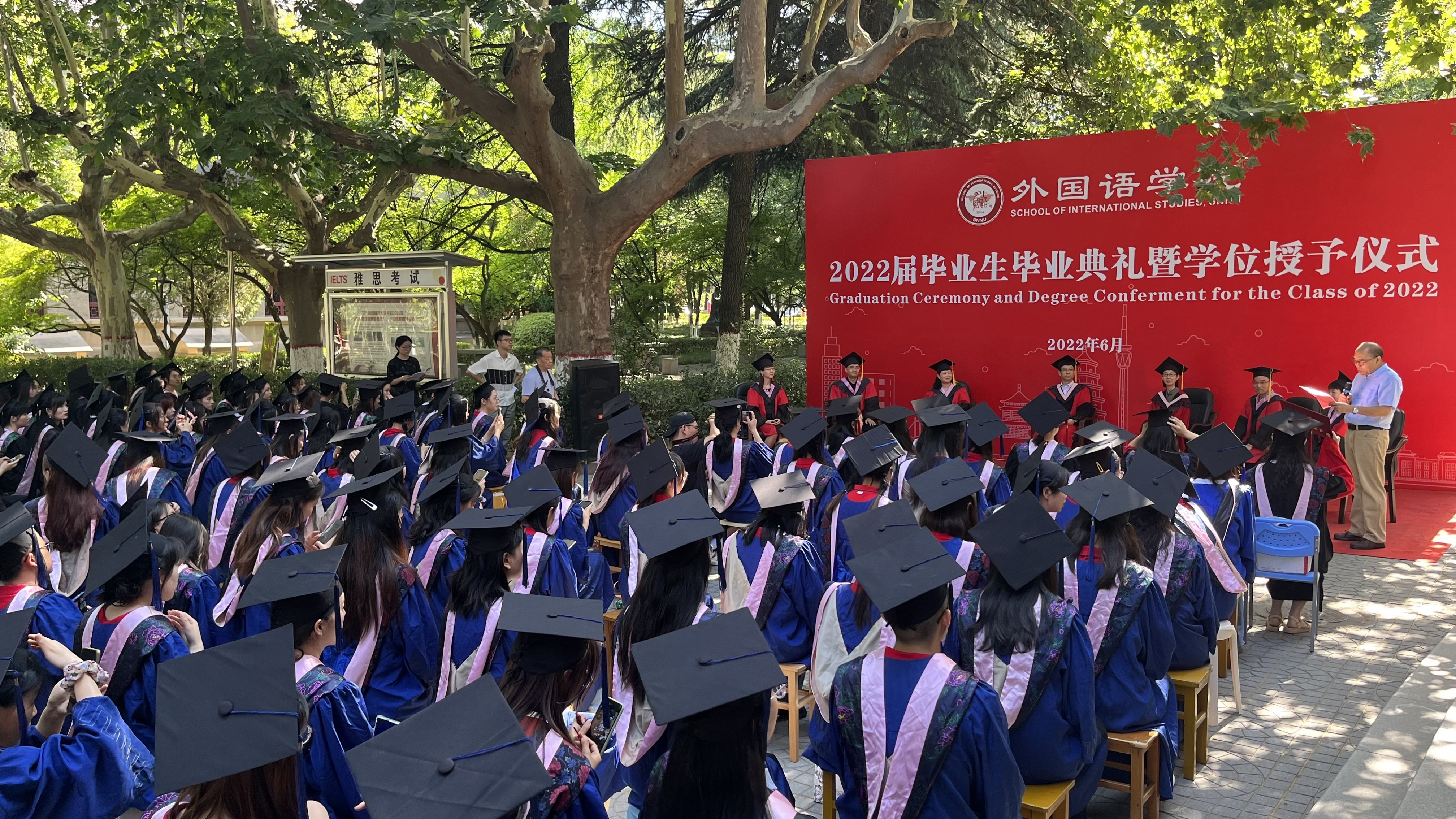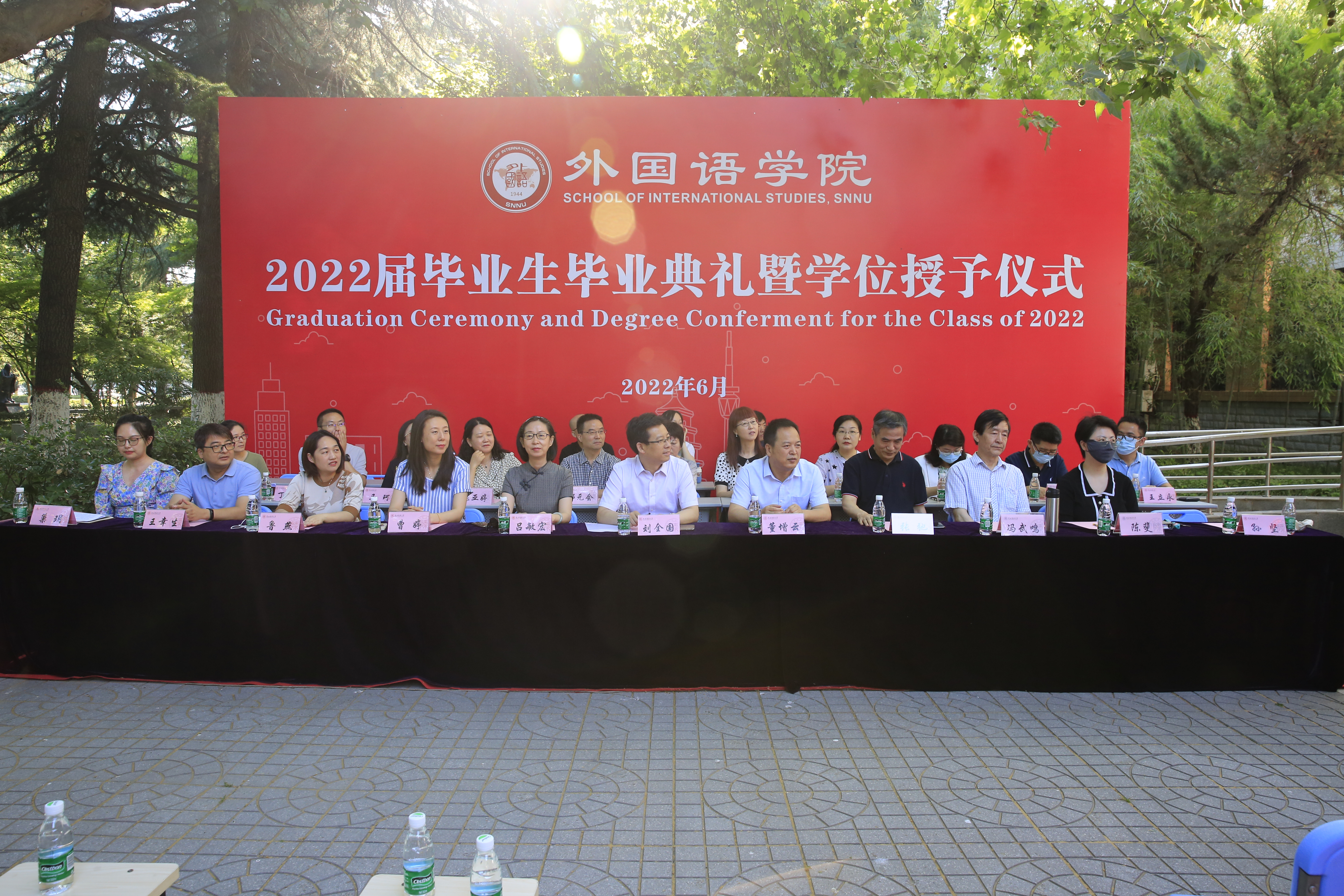 6月24日上午,公司2022届员工毕业典礼暨学位授予仪式在教学六楼门前广场隆重举行,典礼同时在腾讯会议平台直播。外国语学外国语学经理刘全国教授、党委书记董增云、公司前党委书记张弛、冯武鸣、副经理吕敏宏、曹婷、王幸生、党委副书记鲁燕、公共外语教学部主任马珂、英语系主任朱冬怡、副主任王立永、丁礼明、翻译系主任操林英、副主任杨冬敏、俄语系主任孟霞、副主任王翠、法语系副主任乔溪、日语系副主任许赛锋、学位委员会成员郑元会、张亚婷、魏军梅、办公室主任陈斐、语言语音教学中心主任邢俊升、团委书记李丹,以及全体辅导员出席典礼。典礼由太阳成集团tyc234cc副经理孙坚教授主持。公司2022届毕业生在公司领导和老师的共同见证下,拨穗正冠,开启人生新的旅程。