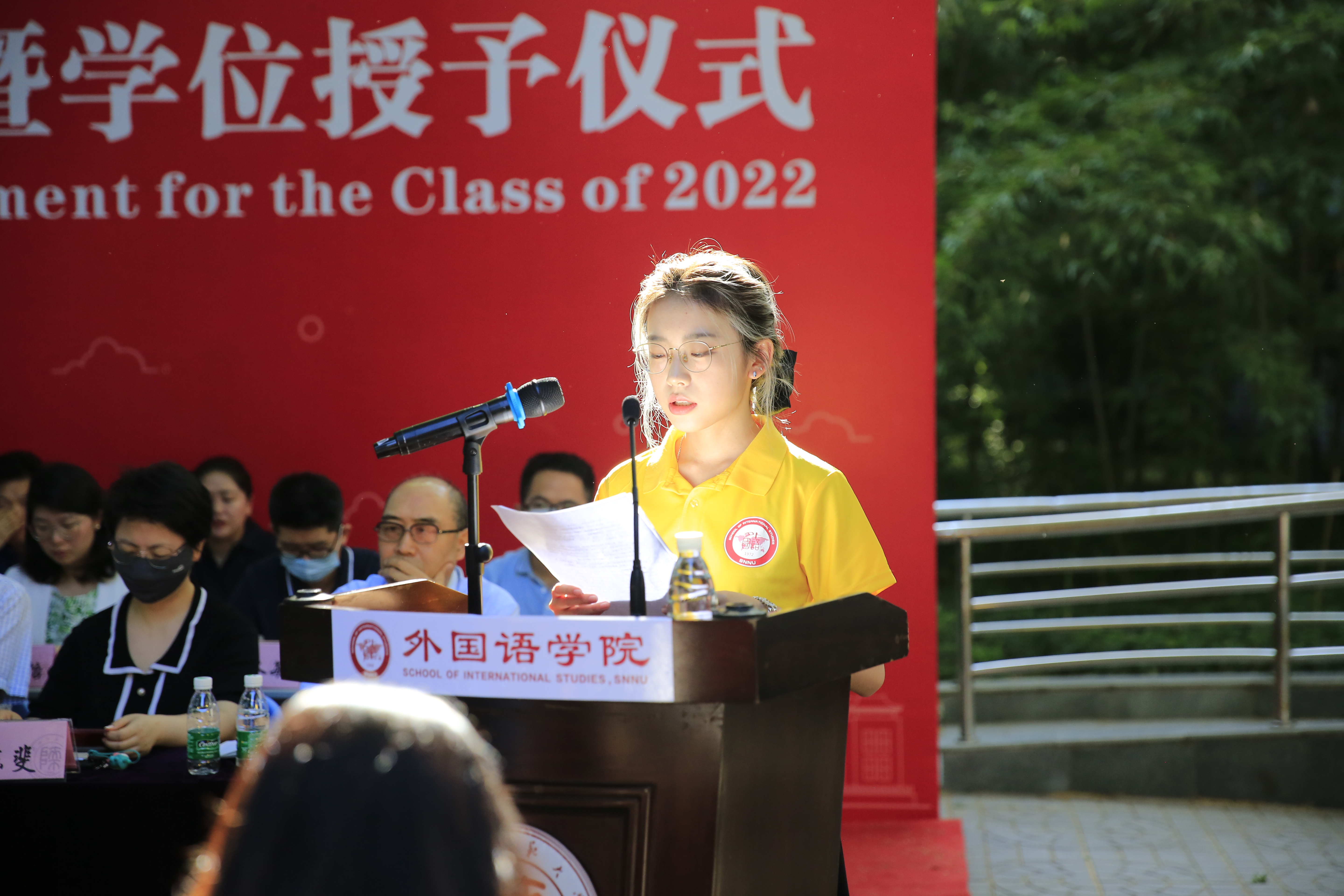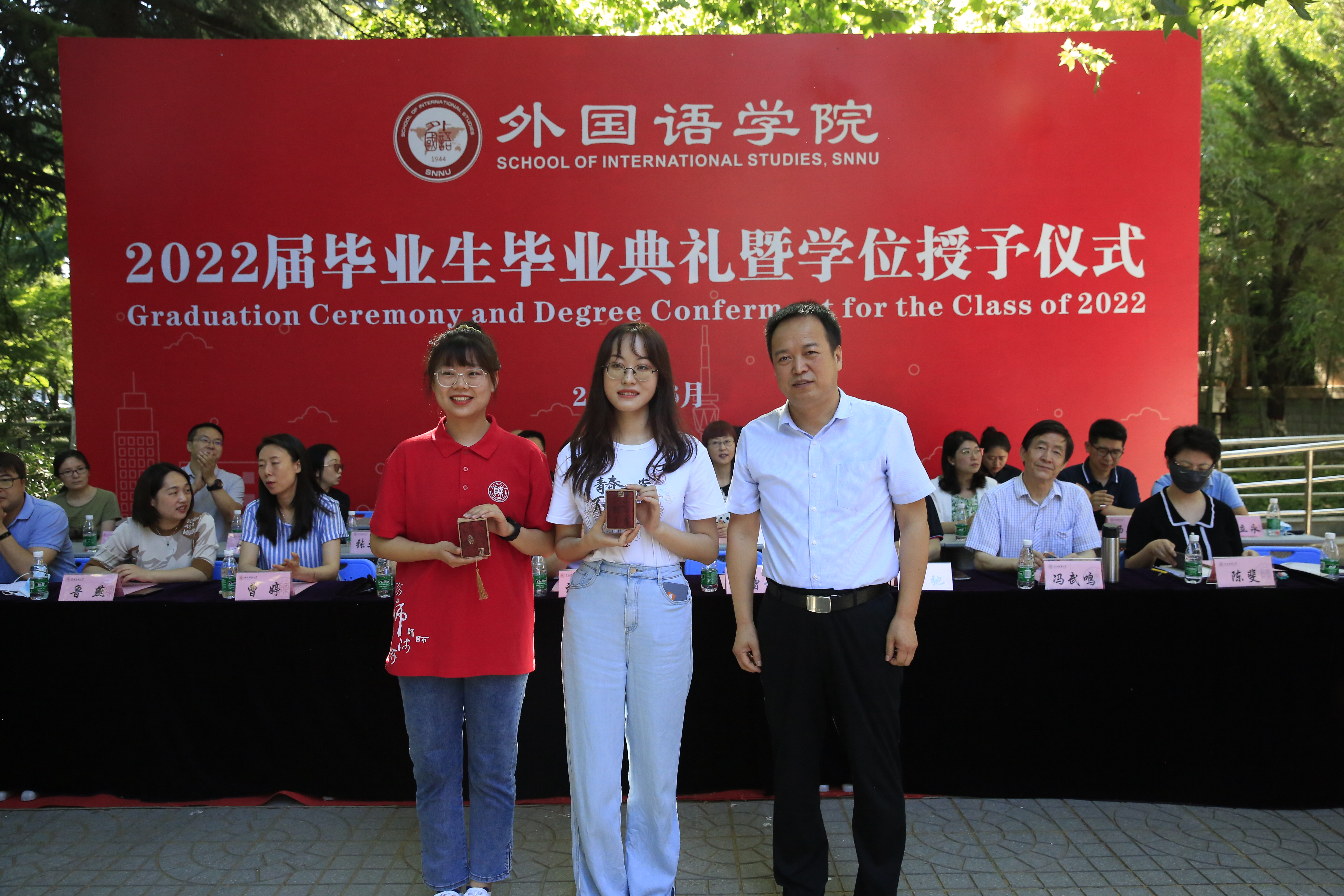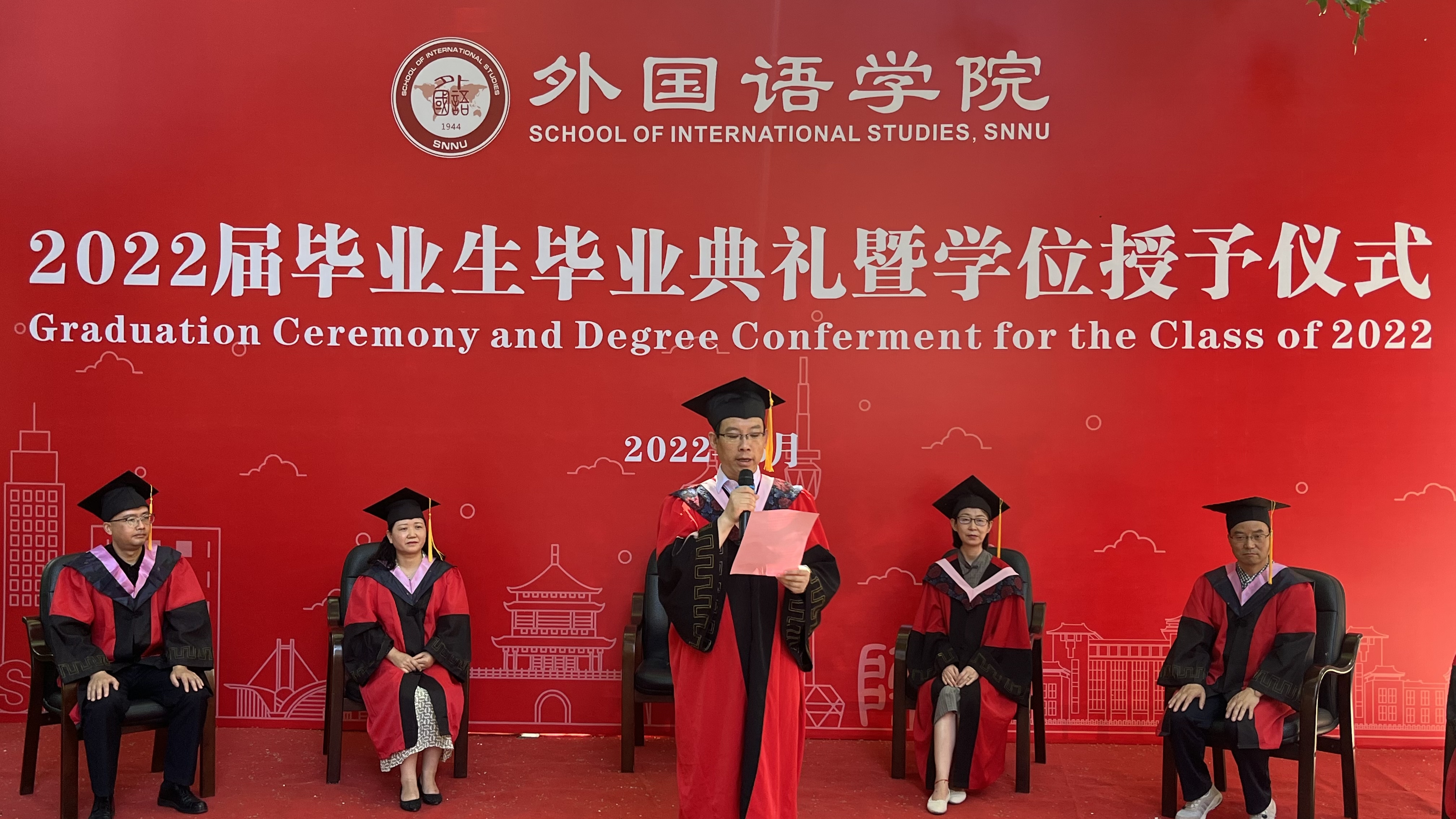 6月24日上午,公司2022届员工毕业典礼暨学位授予仪式在教学六楼门前广场隆重举行,典礼同时在腾讯会议平台直播。外国语学外国语学经理刘全国教授、党委书记董增云、公司前党委书记张弛、冯武鸣、副经理吕敏宏、曹婷、王幸生、党委副书记鲁燕、公共外语教学部主任马珂、英语系主任朱冬怡、副主任王立永、丁礼明、翻译系主任操林英、副主任杨冬敏、俄语系主任孟霞、副主任王翠、法语系副主任乔溪、日语系副主任许赛锋、学位委员会成员郑元会、张亚婷、魏军梅、办公室主任陈斐、语言语音教学中心主任邢俊升、团委书记李丹,以及全体辅导员出席典礼。典礼由太阳成集团tyc234cc副经理孙坚教授主持。公司2022届毕业生在公司领导和老师的共同见证下,拨穗正冠,开启人生新的旅程。