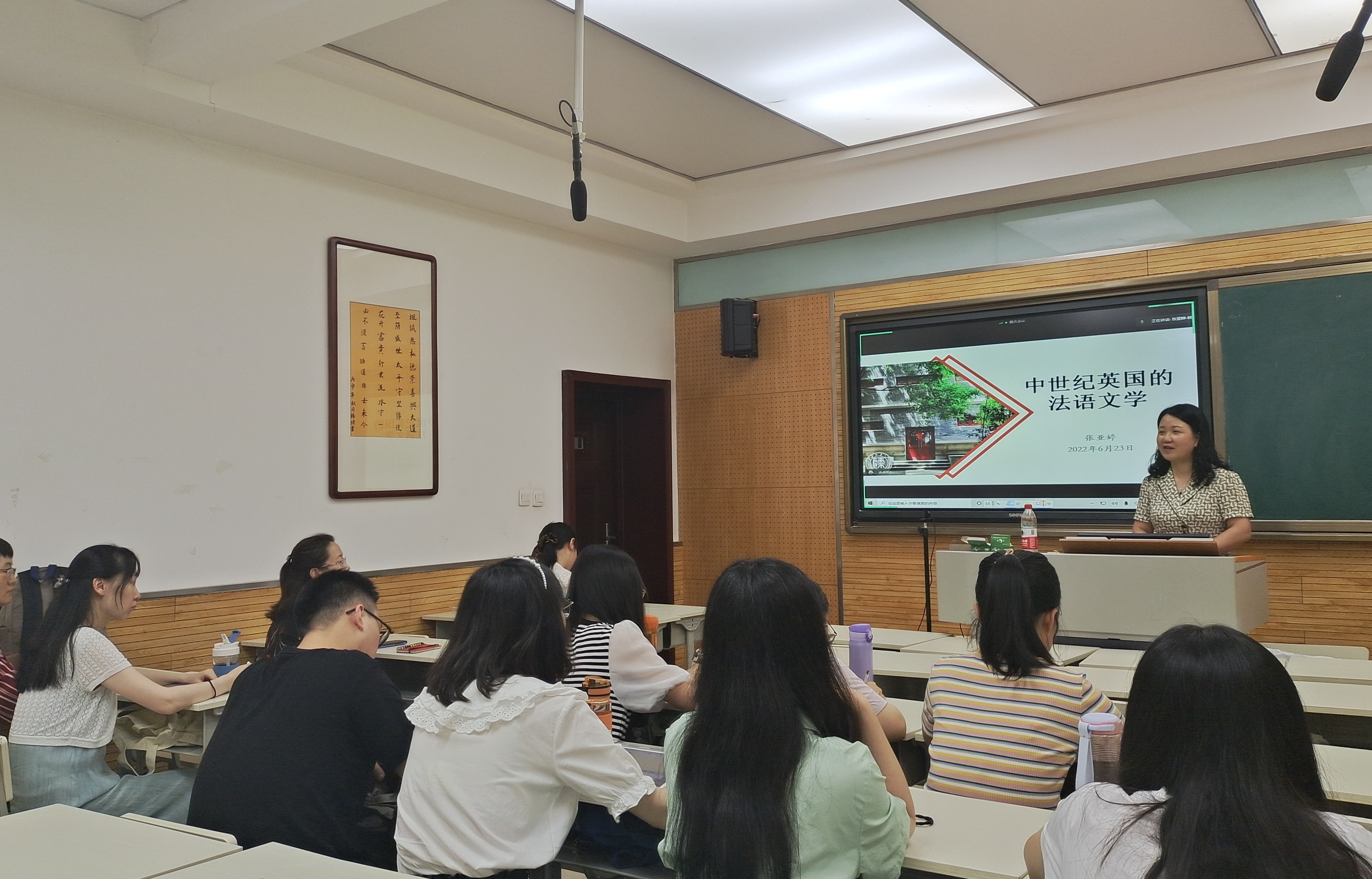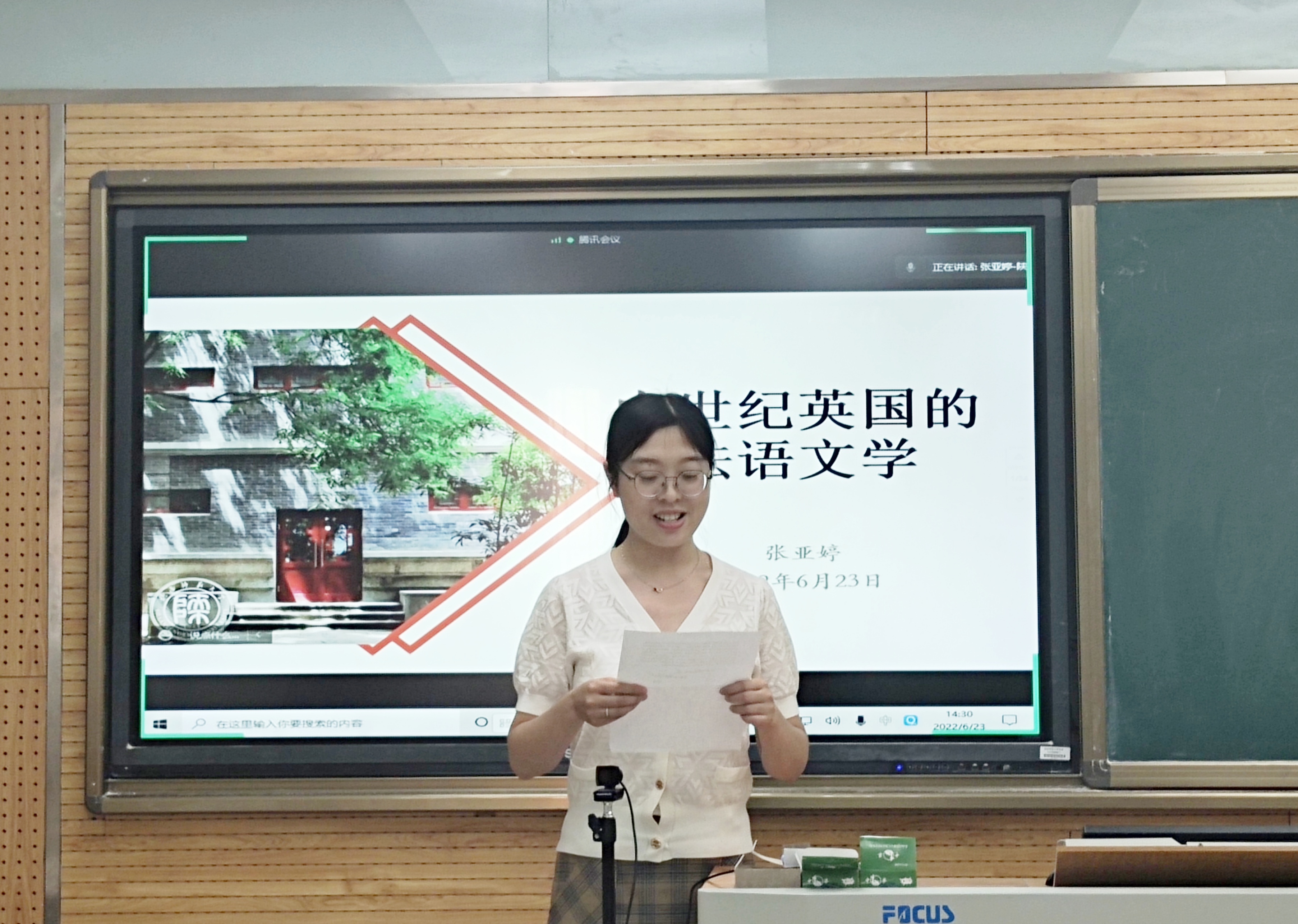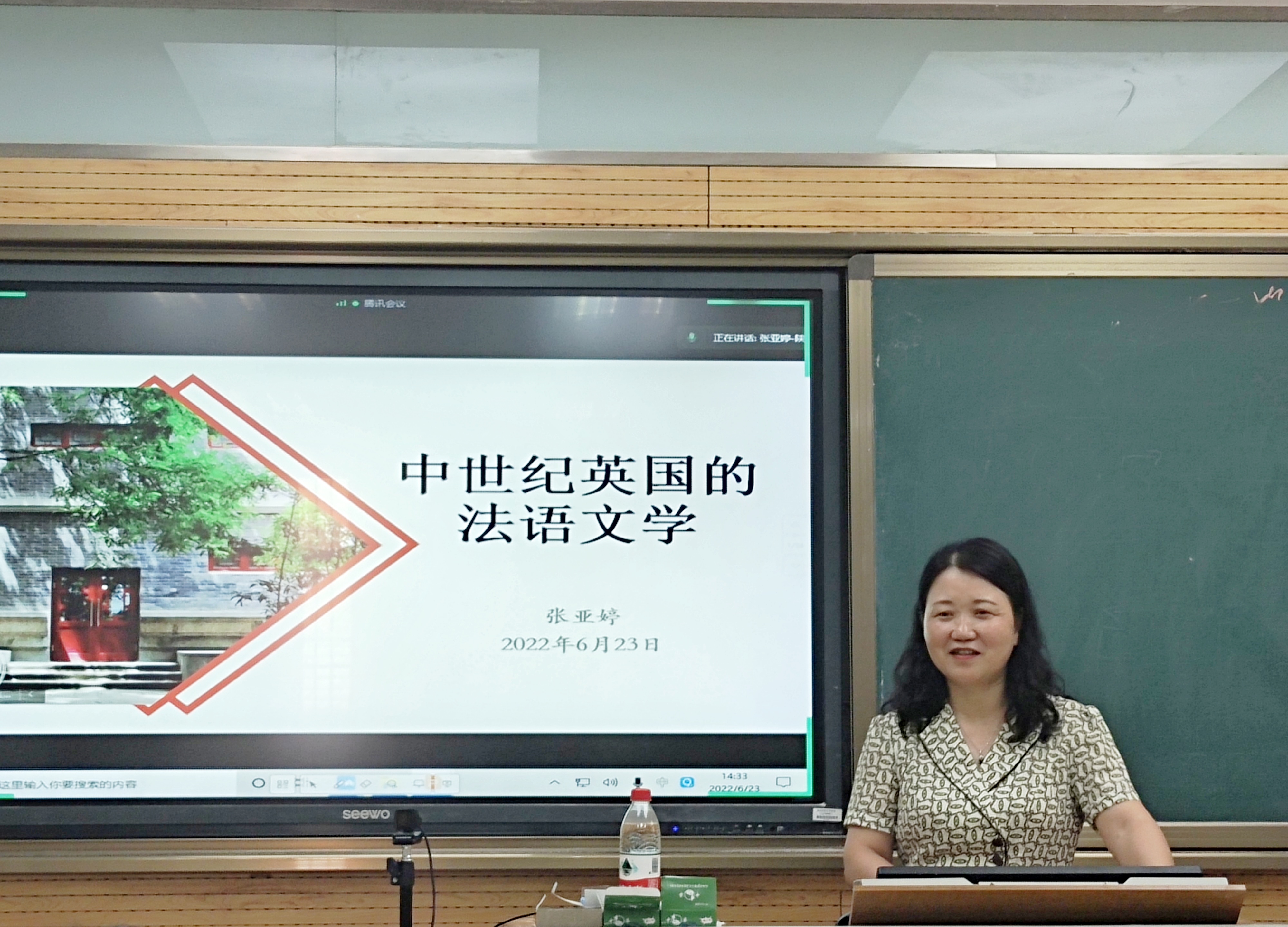 为推进外国文学专业教学水平发展,提高员工文学素养、创新意识、写作与表达能力。6月23日14点30分,太阳成集团tyc234cc公司英国文学研究团队于教学五楼5108开展了题为“中世纪英国的法语文学”的专题讲座。张亚婷教授担任主讲人,原玉薇博士主持讲座,太阳成集团tyc234cc教师及文学专业研究生参与讲座。