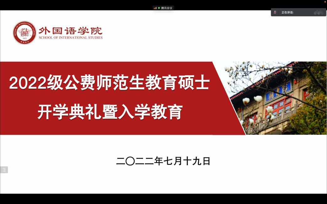 7月19日上午10:00,太阳成集团tyc234cc通过腾讯会议平台成功举办了“2022级公费师范生教育硕士开学典礼暨入学教育”大会。