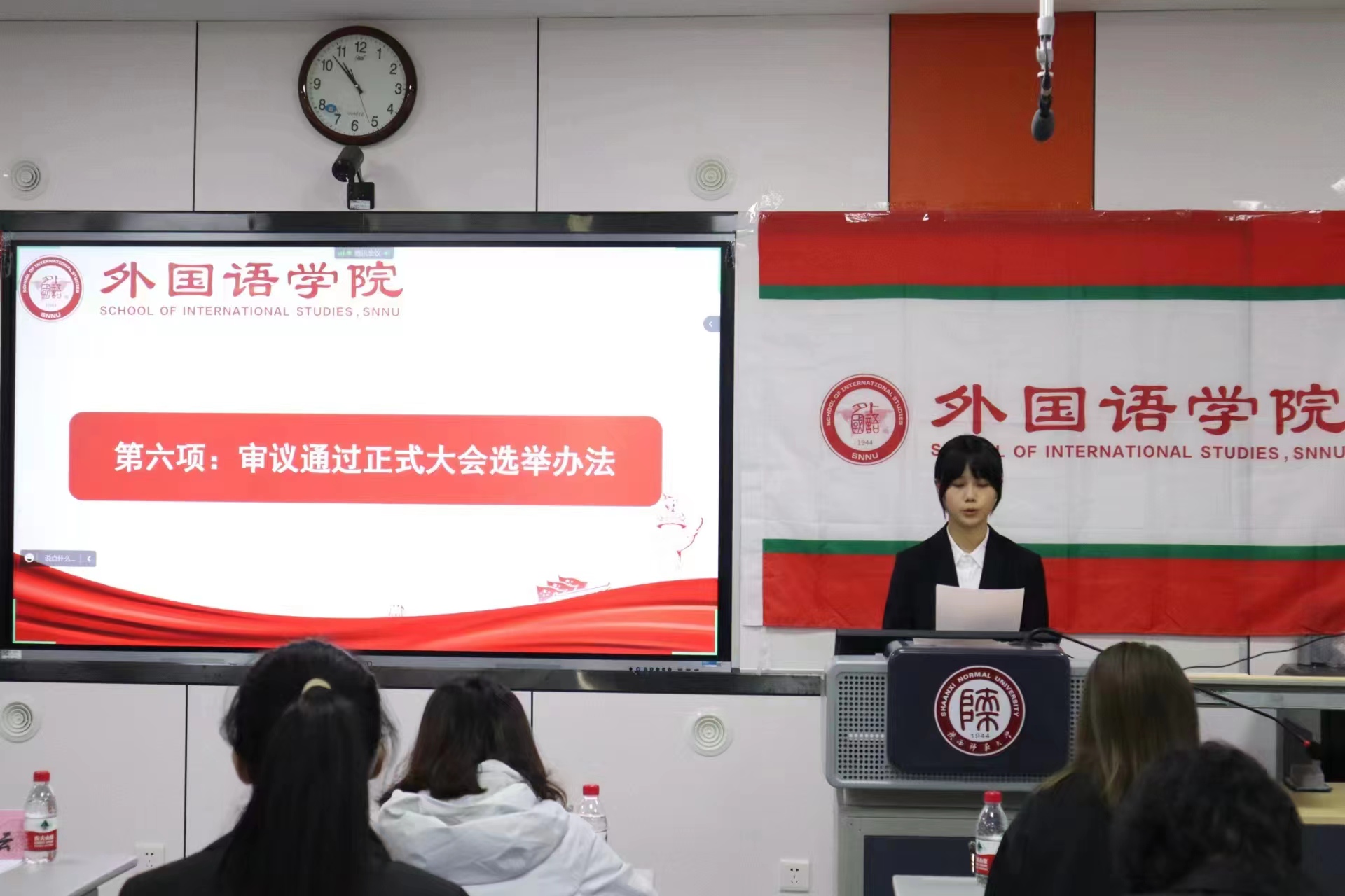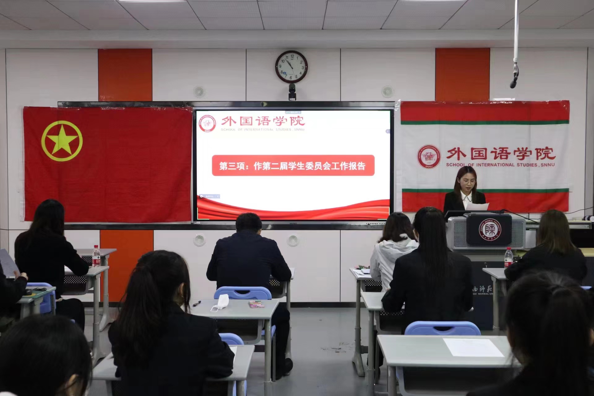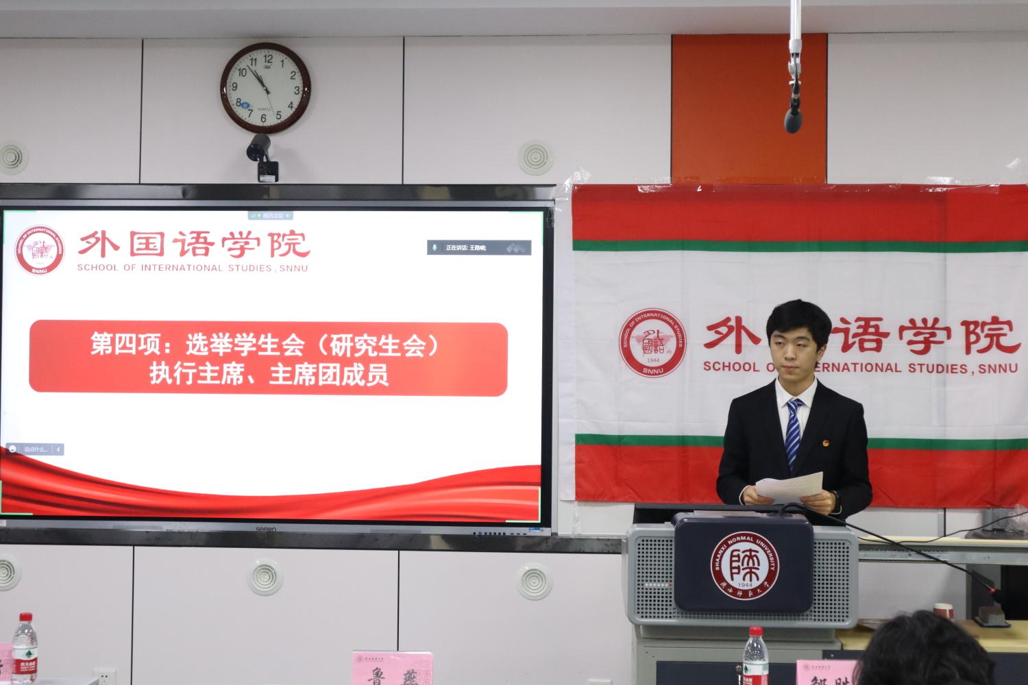 迟昕雨、马曦分别宣读本科生及研究生提案工作报告,提出了同学们普遍关心和亟待解决的问题。