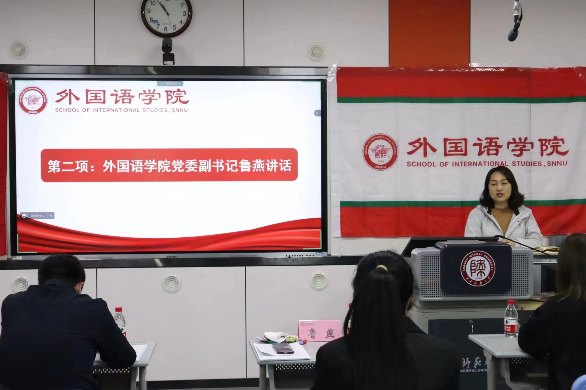 随后,公司党委副书记鲁燕致辞,她强调了本次大会的指导思想和总体目标,并对各位员工代表提出两点希望:第一、希望代表们响应党的号召,深入学习党的二十大精神,坚定理想信念,做习近平新时代中国特色社会主义思想的信仰者和执行者;第二、希望代表们自觉担当职责,带领外院学子不忘初心,砥砺前行,不断加强自身建设,摆正自己“服务员工”的位置,反映员工诉求,做好同学们的“连心桥”。