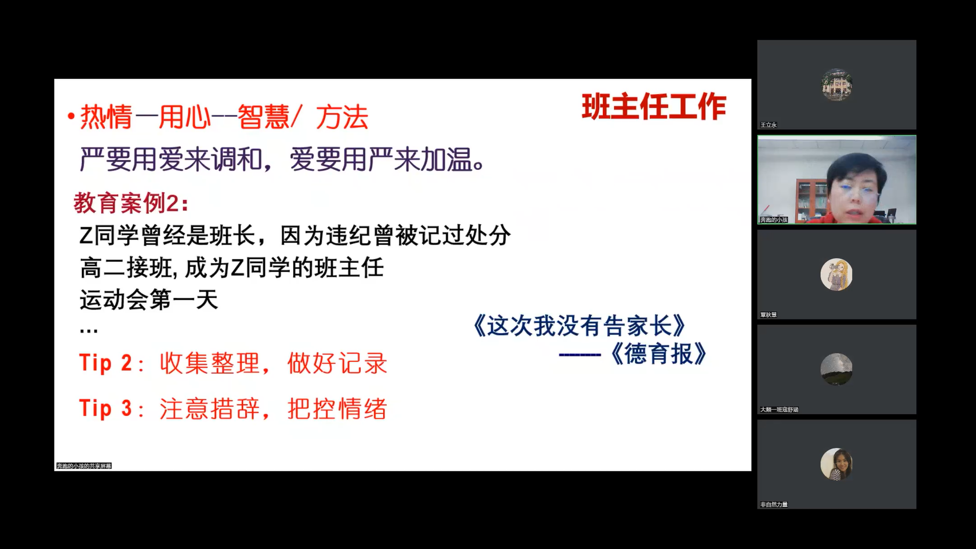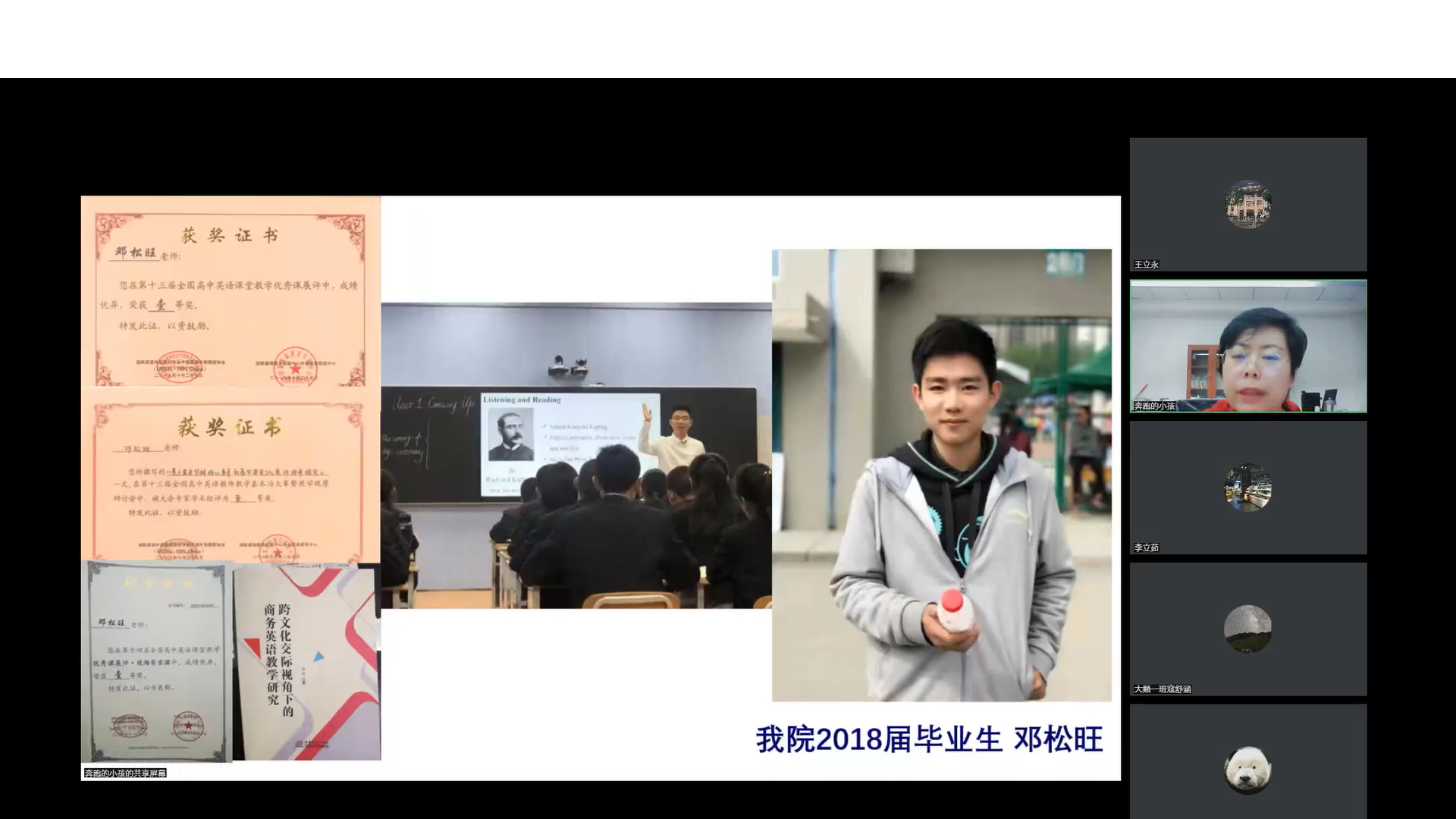 2022年11月11日晚,太阳成集团tyc234cc一流本科专业建设论坛之与基础教育名师面对面活动邀请公司2022届优秀员工、山西省实验中学高级教师王瑞敬通过腾讯会议就公费师范生的求职面试、专业能力提升和班级管理艺术开展专题讲座。本次讲座由英语系副主任王立永副教授主持,李立茹老师和200余名公费师范生参加了讲座。