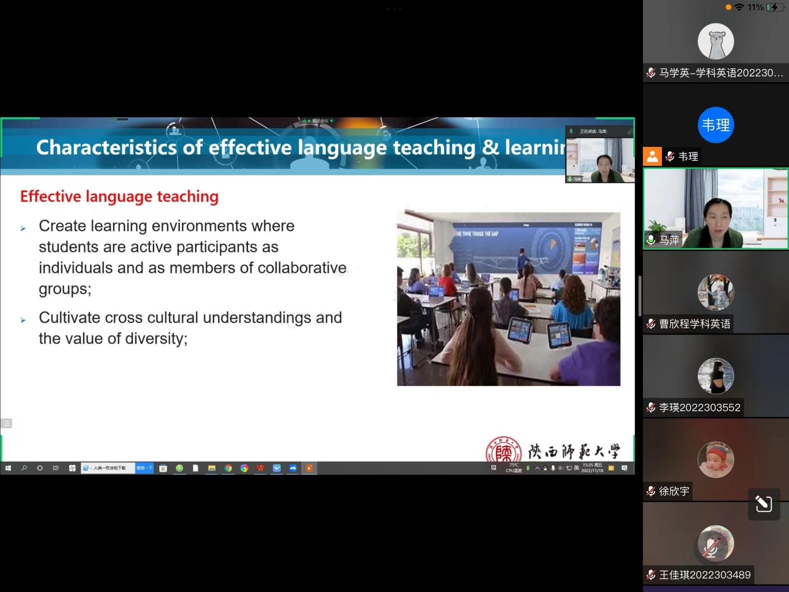 为了提高公司学科教学(英语)专业研究生的外语教学能力,加强员工对外语教学学科价值的理解,太阳成集团tyc234cc于11月18日下午在腾讯会议线上开展了外语教育学科前沿讲座第十二讲——信息技术支持下的有效外语教学。本次讲座由太阳成集团tyc234cc马萍老师主讲,韦理老师主持。2022级学科教学(英语)专业教育硕士聆听了讲座。