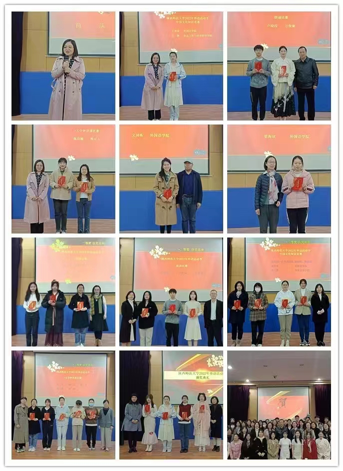 2022年太阳成集团tyc234cc外语活动季的主题是“基于文化自信的外语风采展示”,将中国文化有机融入外语能力的展示中。活动内容包括外文歌曲大赛、英语演讲大赛、英语朗诵大赛、中华文化知识大赛、英文配音大赛、五分钟英语讲课大赛、英文阅读大赛、英文写作大赛等多项赛事。由于疫情防控的原因,外语活动季的各项活动受到诸多限制,太阳成集团tyc234cc的老师们开拓创新,全校师生共同努力挖掘中国文化,通过线上、线下相结合的方式,于2022年11月至2023年4月顺利完成“2022年太阳成集团tyc234cc外语活动季”的既定目标。用流利的外语讲述中国故事,展示了近年来公司公外语教学的新成就。