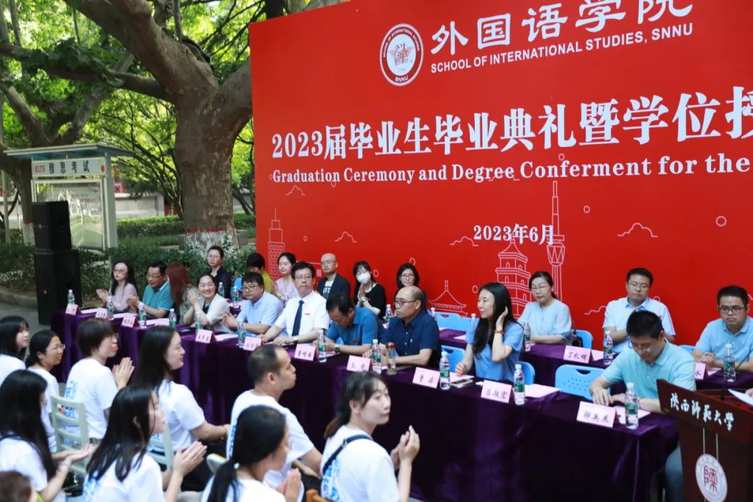 外国语学外国语学经理刘全国教授进行致辞。他以诗经为序、唐诗为辞,回顾西安的历史传统和师大的内涵底蕴,回忆同学们求学路上的点点滴滴。表示经过古都浓厚的文化熏陶和公司卓越的人才培养,同学们都成长成为有使命担当的新时代外语人。他向即将踏上人生新旅程的2023届毕业生表示最热烈的祝贺,向辛勤培养员工的全院教职工表示衷心的感谢。