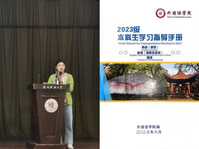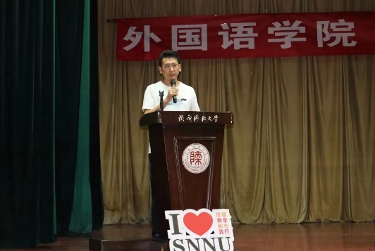 我外国语学经理刘全国教授以家长的身份向2023级新生介绍了外院大家庭的基本情况。他从“仰望星空,志存高远”、“世界很大,家国为体”、“强身健体,拥抱生活”和“醉心学习,快乐成长”四个方面表达对新生的期望,寄语新生要涵养情怀、会通中西、兼容并蓄,与时代同频共振,用外语讲述中国故事,争做“博雅”、“多语”、“国际”、“教育”、“研究”五位一体的外语全人。
