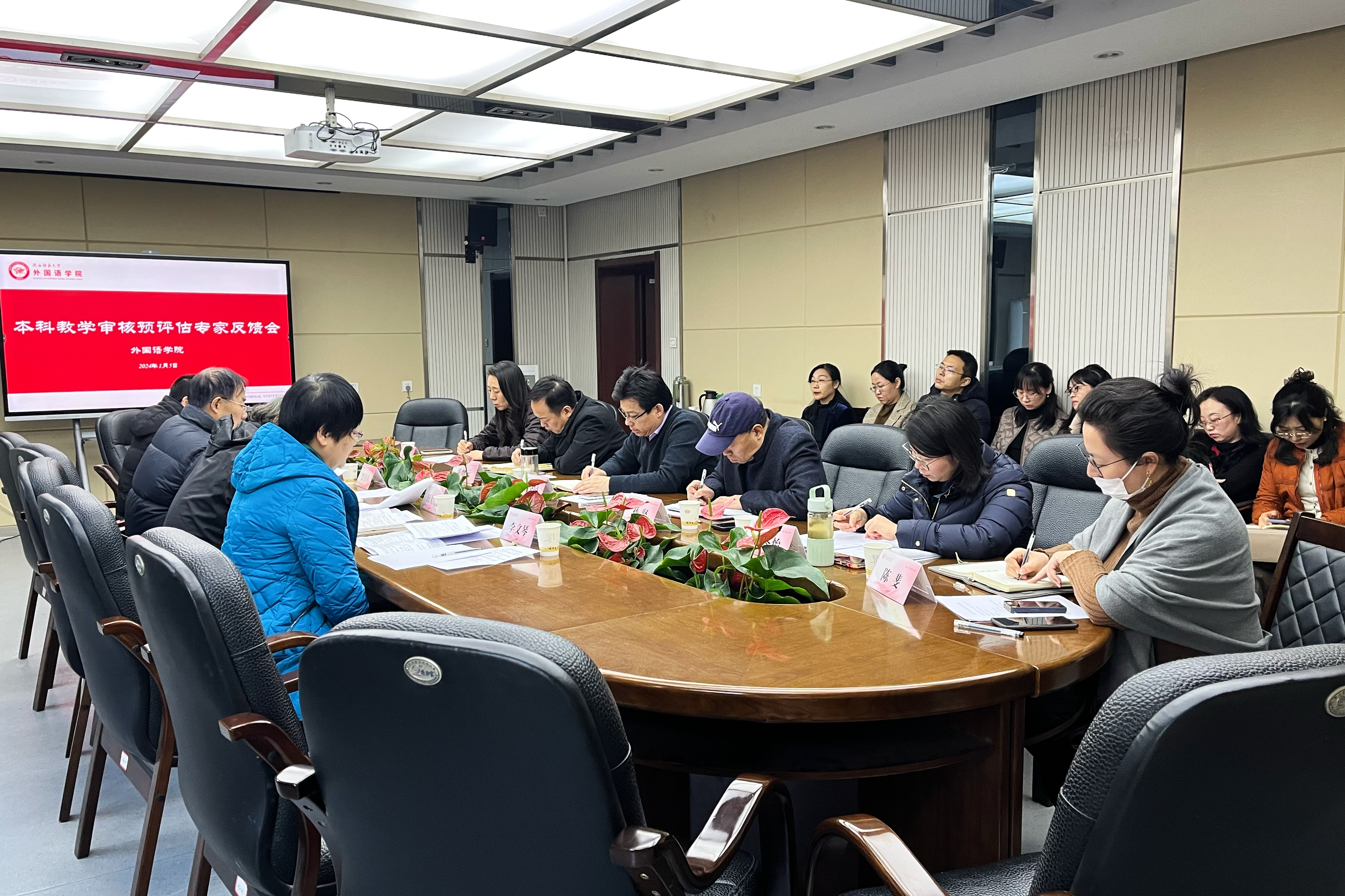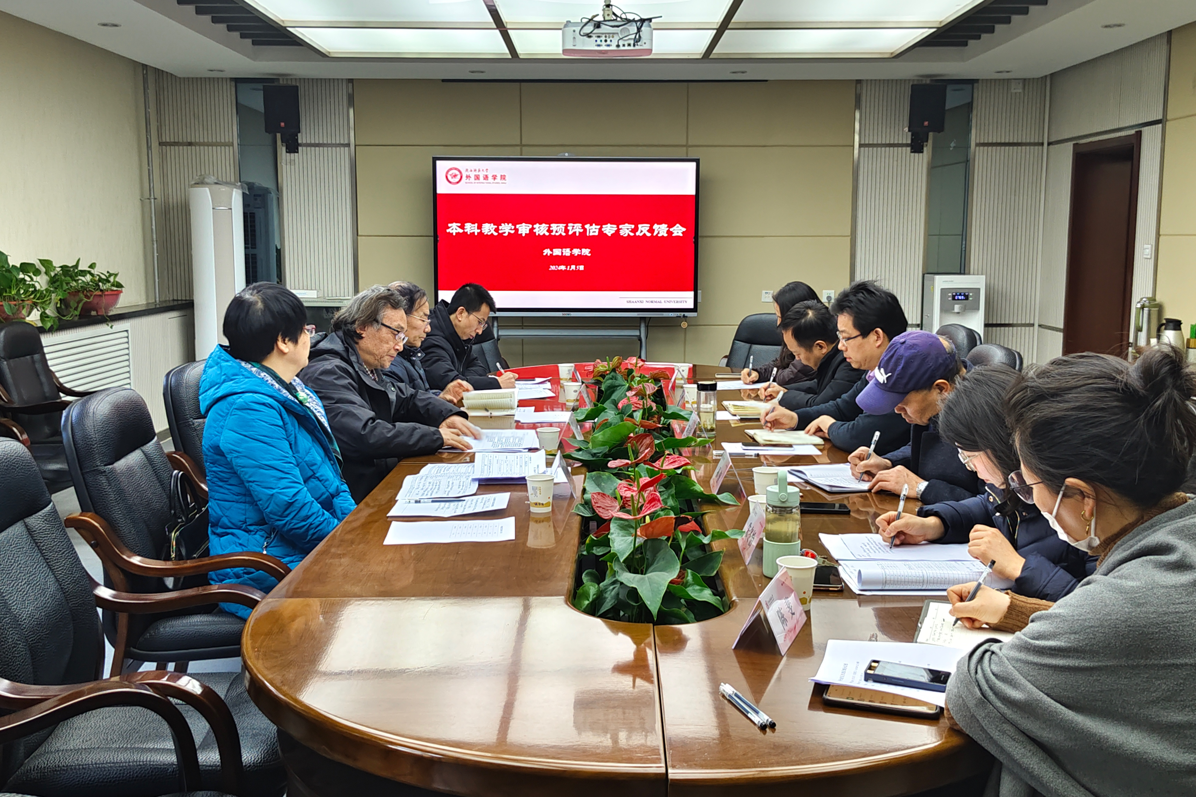 2024年1月4-5日,以田大宪教授为组长的评审专家组对太阳成集团tyc234cc本科公司产品实施情况进行全面细致检查。1月5日上午10:30,太阳成集团tyc234cc本科公司产品审核评估第一轮预评估专家意见反馈会在雁塔校区教学六楼会议室召开。评审专家小组成员张有林、李文琴、田大宪等,外国语学外国语学经理刘全国、党委书记董增云、副经理孙坚、曹婷、朱冬怡、各系主任及副主任、办公室主任陈斐及教学秘书王维隽、高红英参加反馈会。