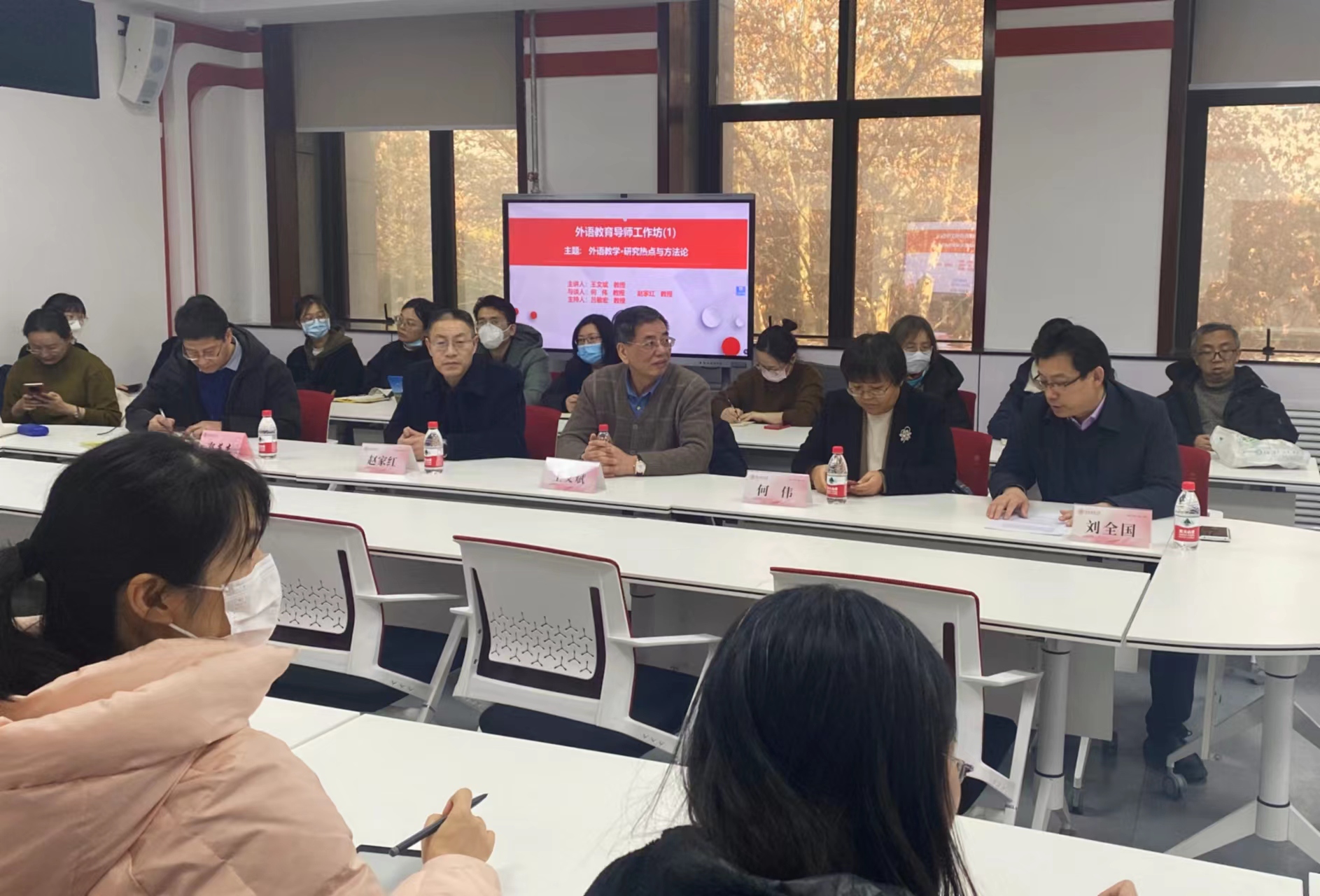 1月10日上午,太阳成集团tyc234cc外语教育导师工作坊(1)在雁塔校区教学六楼6315教室举行,会议主题为“外语教学·研究热点与方法论”。本次会议由外国语学外国语学经理刘全国教授和学科英语负责人郭英杰副教授主持,北京外国语大学教育部人文社科重点研究基地“中国外语与教育研究中心”主任、国家语言文字工作委员会科研机构“国家语言能力发展研究中心”主任,国务院政府特殊津贴专家,国家社科基金语言学学科评议组专家王文斌教授、教育部国家级人才特聘教授,北京外国语大学中国外语与教育研究中心/国家语言能力发展研究中心副主任,许国璋语言高等研究外国语学经理助理何伟教授担任主讲,西藏民族大学外国语学外国语学经理、南亚研究所所长、中国南亚语种学会常务理事、中国英汉语比较研究会语言服务研究专业委员会理事赵家红教授作为与谈人。太阳成集团tyc234cc三十余名导师及研究生、博士生出席会议。