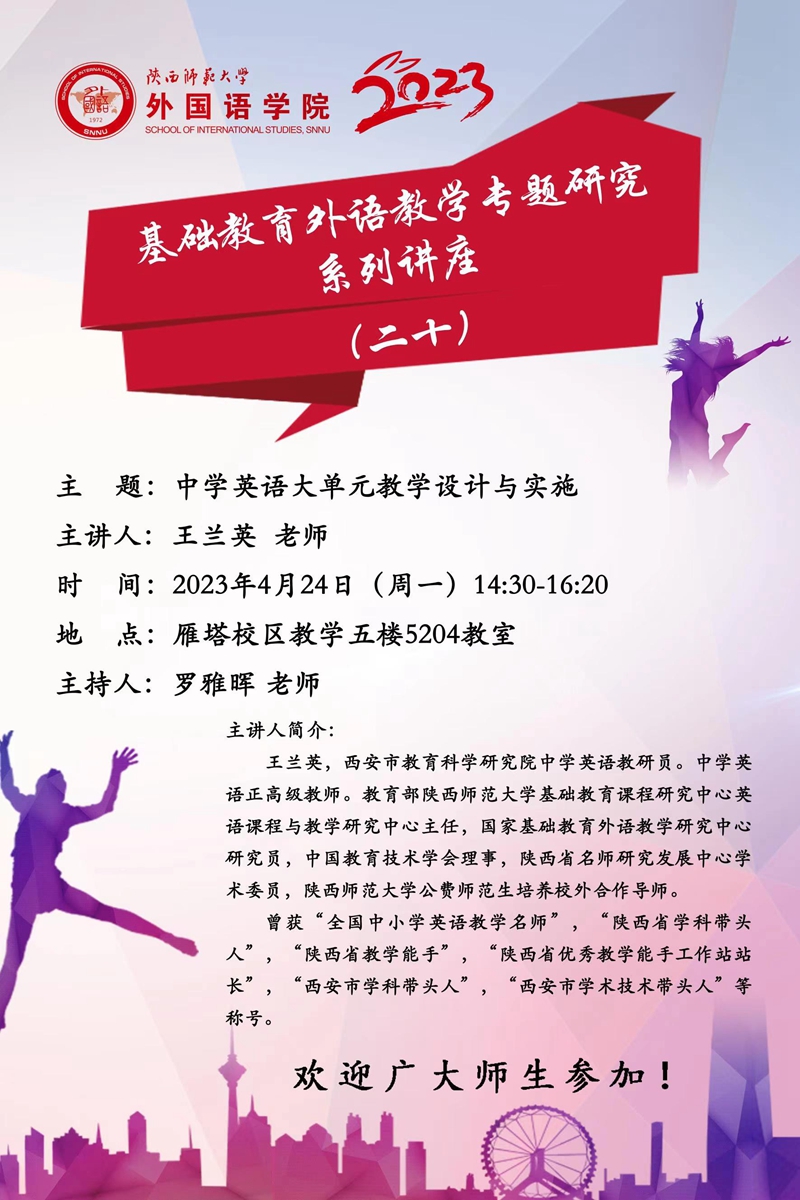 基础教育外语教学专题研究系列讲座(二十) 预告