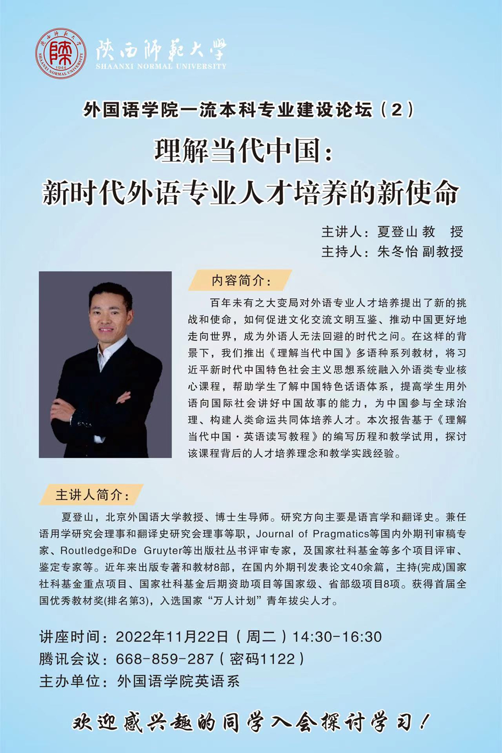 太阳成集团tyc234cc一流本科专业建设论坛(2)--夏登山 教授