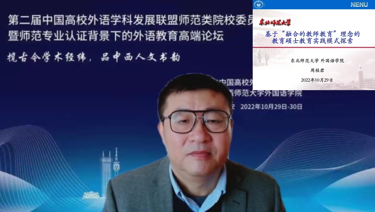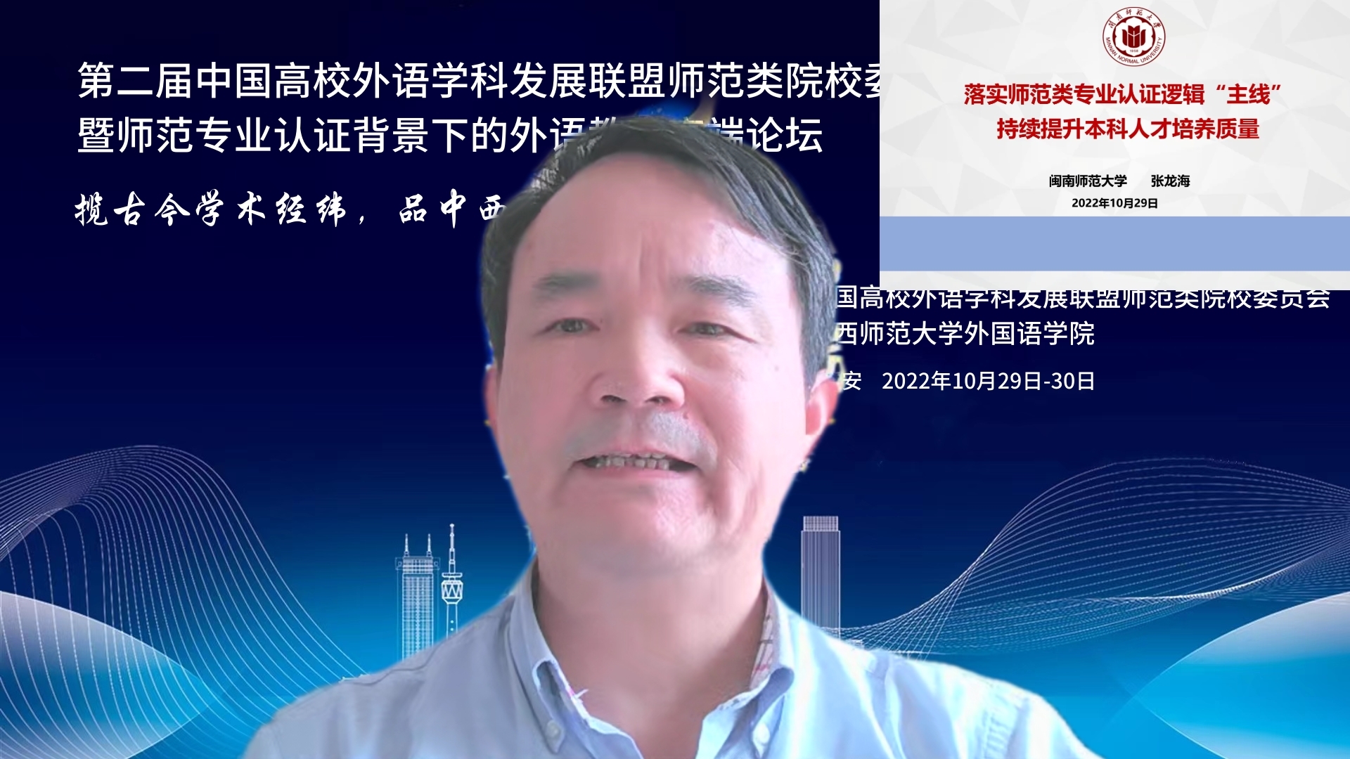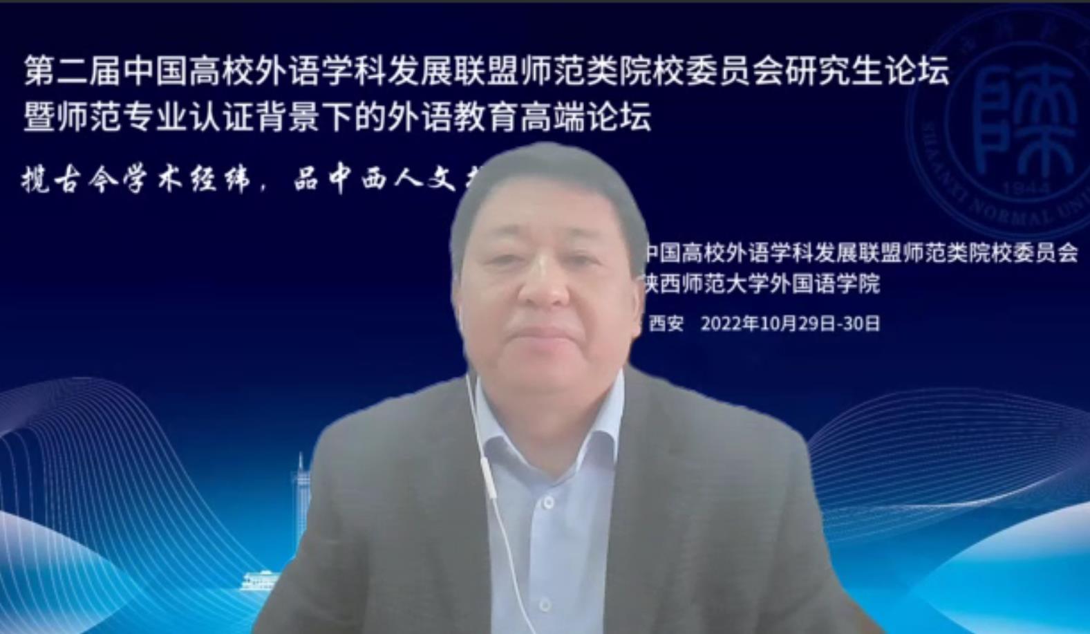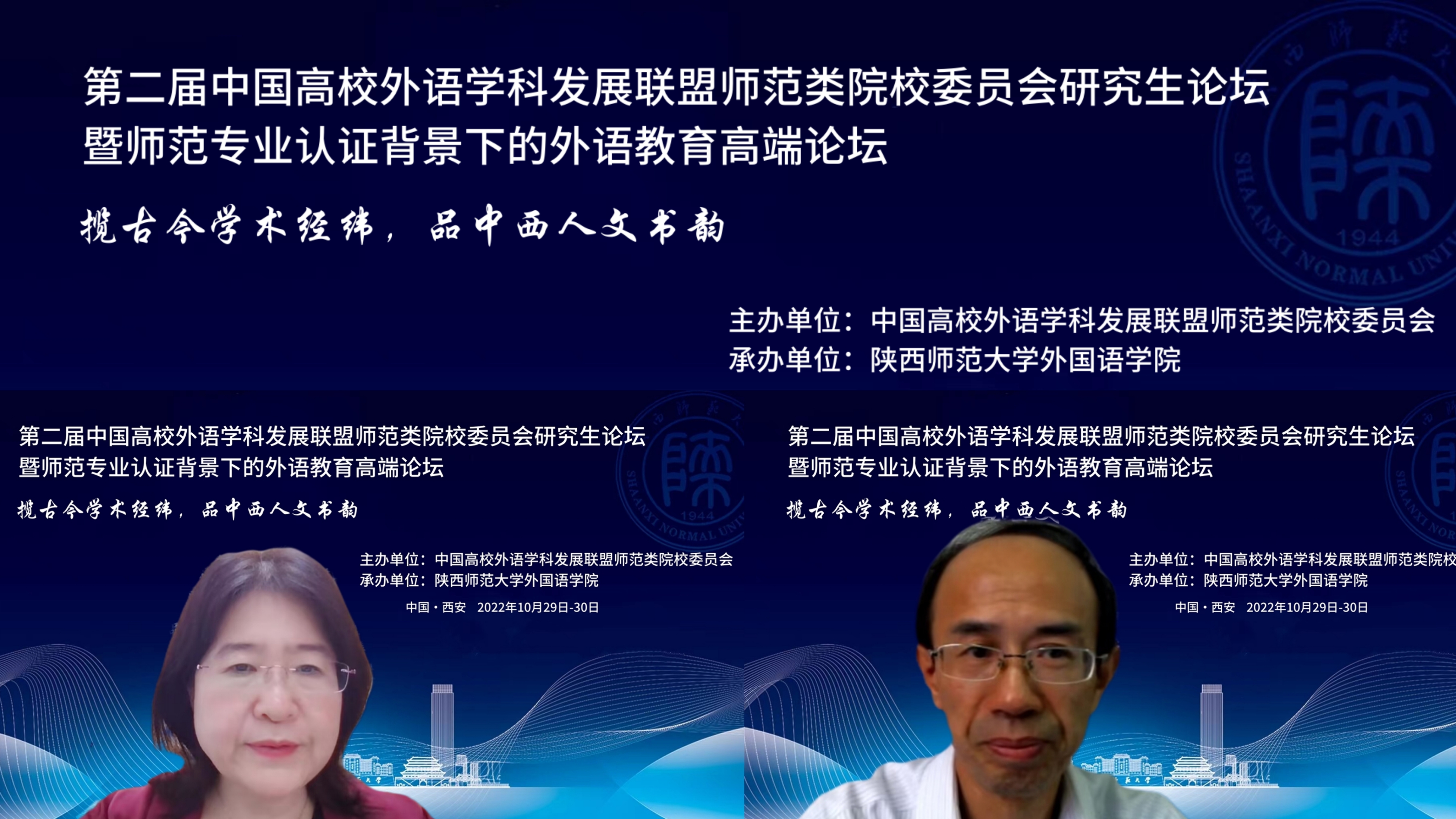 2022年10月29至30日,由中国高校外语学科发展联盟师范类院校委员会主办,太阳成集团tyc234cc承办的“第二届中国高校外语学科发展联盟师范类院校委员会研究生论坛暨师范专业认证背景下的外语教育高端论坛”在线上成功举办。来自近40所院校及科研机构的80余名师生参会发言,另有1000余名师生通过线上观看了论坛盛况。