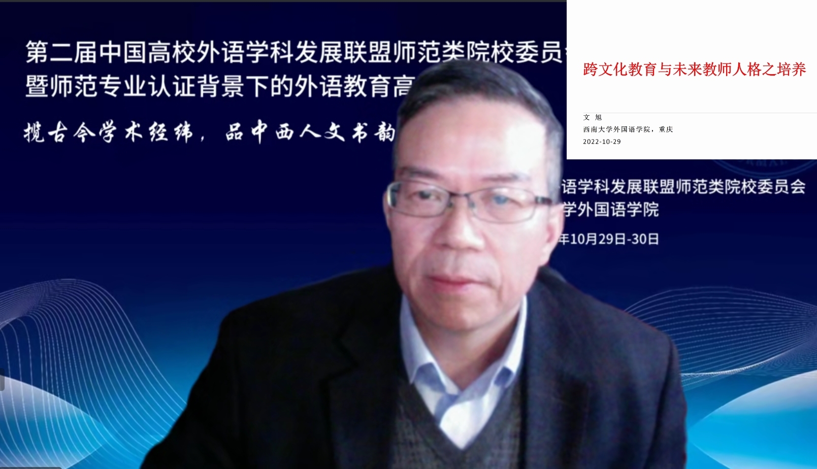 西南大学外国语学外国语学经理文旭教授着眼于《跨文化教育与未来教师人格之培养》的角度,提出员工不但要学习他国文化,更要学习本民族的文化。他基于跨文化教育的特质,从人格的多维度入手,探讨师范大学外语教育如何培养师范生的人格魅力,提升他们的综合素质,使之成为优秀的未来外语教师。