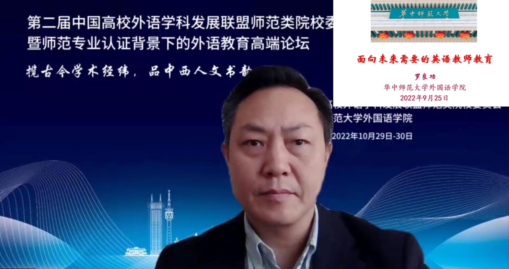 华中师范大学外国语学外国语学经理罗良功教授在报告《面向未来需要的英语师范人才培养》中指出,当下英语师范生教育深化改革的重点任务包括:培养目标的核心能力指向、教学内容本土化与时代化、实践教学多元化和精细化和新技术能力培养等。他提到,新时代的英语教师必须具有更强的核心能力。