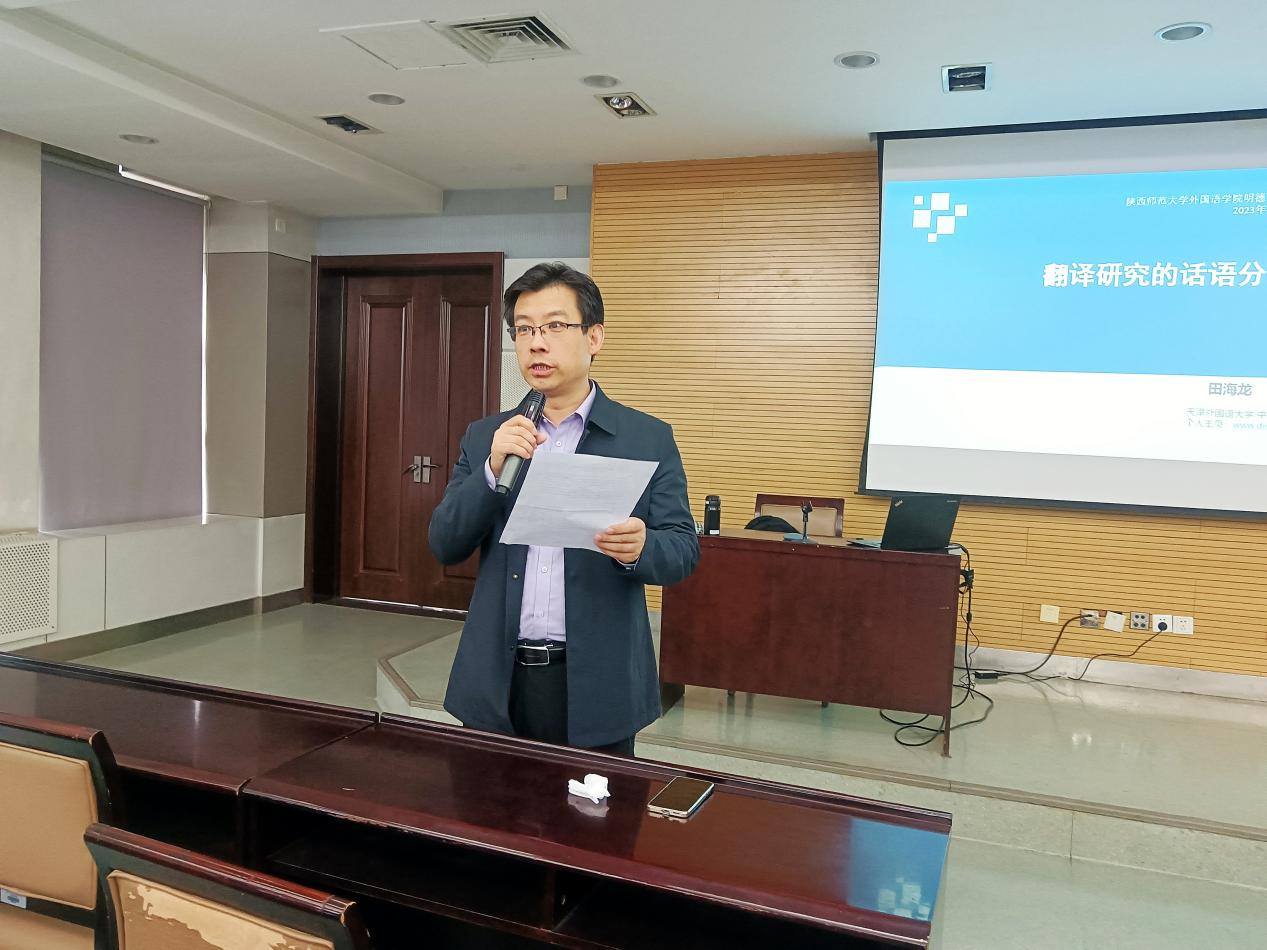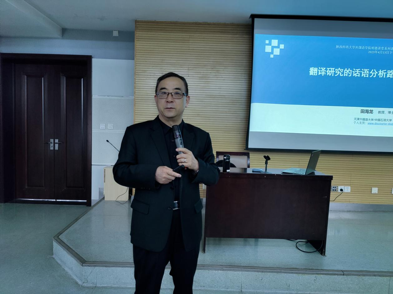 2023年4月13日下午2点30分,天津外国语大学田海龙教授应邀做客公司举办的“明德讲堂”系列讲座(第156期),在雁塔校区崇鋈楼思齐堂开展了题为“翻译研究的话语分析新路径”讲座。此次讲座由学外国语学经理刘全国教授主持,公司100多位青年教师、研究生参加了此次讲座。