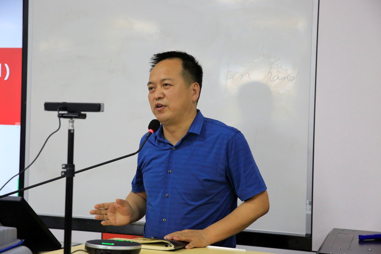 在科研方面,他鼓励教师把外语能力转化为科研能力,融合教学与科研,充分利用“学思坊”平台,助力科研成果产出,以提高公司学科地位,促进学科转型。他对于现阶段取得的科研成果表示肯定,但也明确指出劳动与成果仍存在差距,要继续努力,取得进一步的成就,使科研成果向高精尖方向转化。同时,新课程改革使外语学科与文史哲等学科的联系更加紧密,专业边界模糊,在这样的背景下,刘经理鼓励教师跨学科进行科研,在科研的训练中,促进思维成长,攻读更高学位。