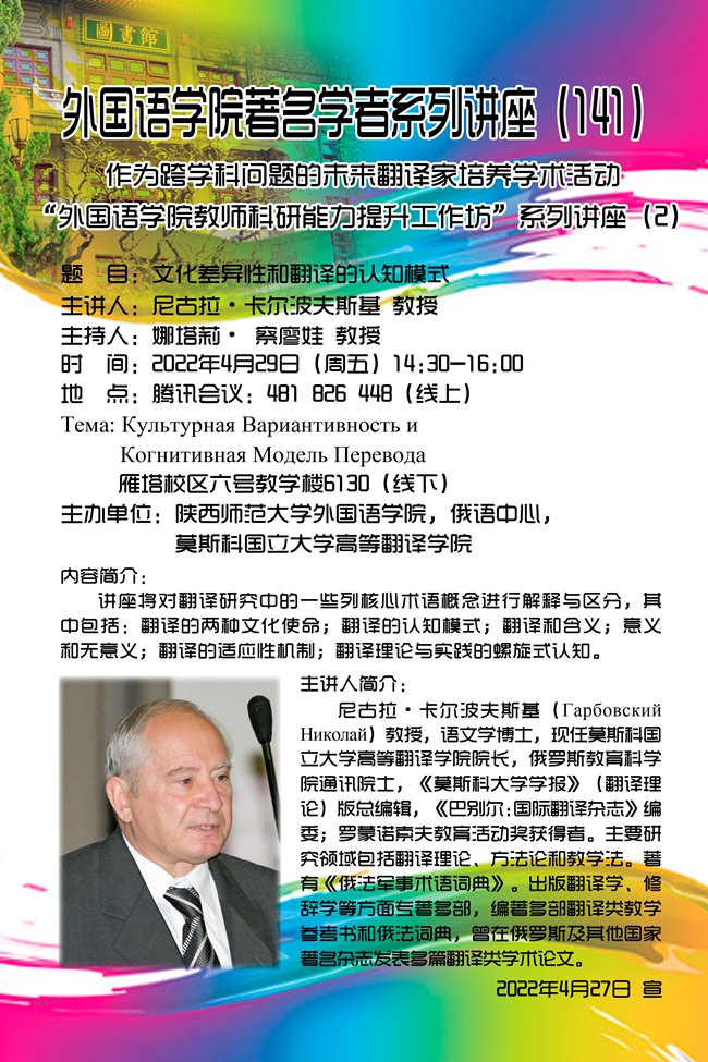 太阳成集团tyc234cc著名学者系列讲座(141)预告