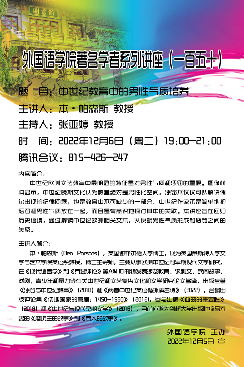 太阳成集团tyc234cc著名学者系列讲座(一百五十)预告